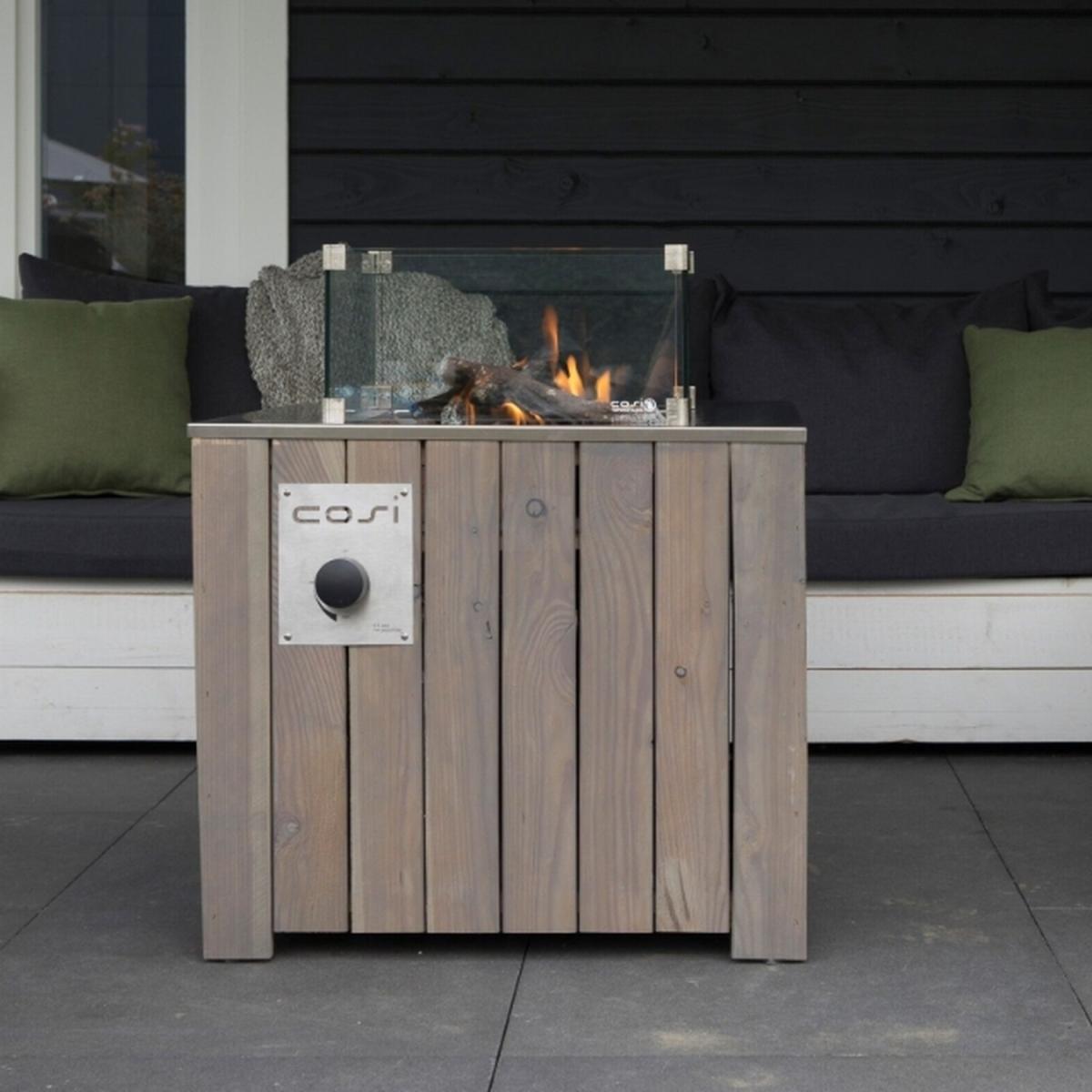 The Cosicube 70 Grey Wash Fire Pit is created by hand from Douglas Fir wood outer which combines beautifully with the premium stainless steel top, the handmade nature of this product means every piece is unique and the materials used make it easy care. The firepit houses a 5kg propane gas bottle which is hidden away from view keeping the clean lines of the Cosicube. The 5kg propane gas bottle can be purchased from all good gas retailers. Why propane gas? A conscious decision was made to make the fire pits only work on propane gas, and not on natural gas. Propane is one of the cleanest fuels in terms of CO2 emission and is a by-product of both the extraction of natural gas and the refining of crude oil. The Cosicube Grey Wash Fire Pit is delivered including a 30 m. Bar regulator with gas hose, 4 ceramic logs, lava stones and a battery to power the ignition. There is also the option to purchase separately a cosi glass set allowing the flames to be protected from the wind, an all-weather protection cover to protect the firepit and a metal plate to protect the lava stones and ceramic logs when not in use.