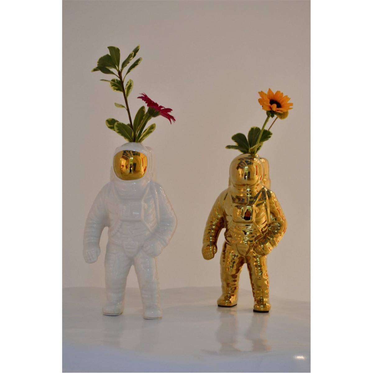 I’m a fan of the Starman vase for its unexpected form and warm metallic finish - it works as a standalone sculpture or a functional floral holder. It’s at home in contemporary, industrial or eclectic schemes where a touch of shiny gold adds interest without clashing. Styling tip: pair it with a single long-stem bloom or a few dried grasses to keep the focus on the astronaut silhouette. Position it on a low console or open shelf alongside books or monochrome ceramics for a balanced display.