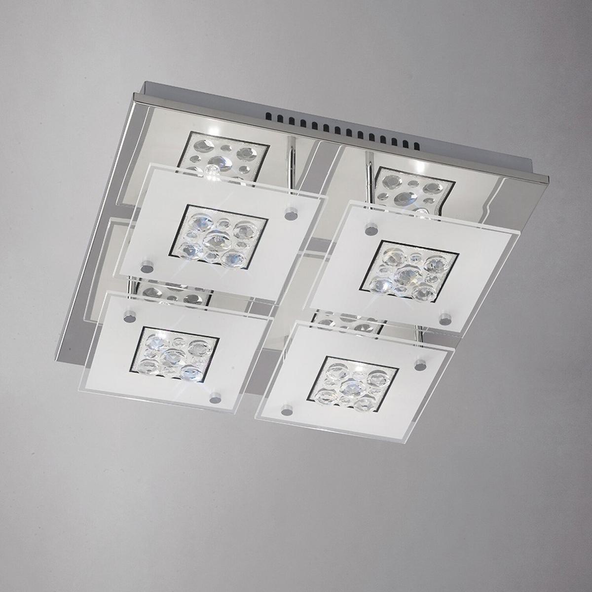 Cosmic Flush Ceiling Square 4 Light Polished Chrome, Glass, Crystal - Polished Chrome