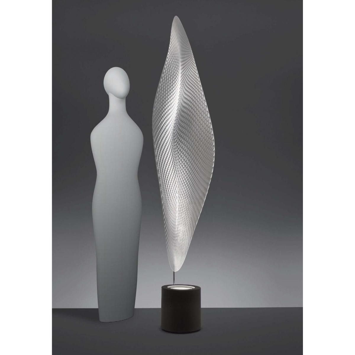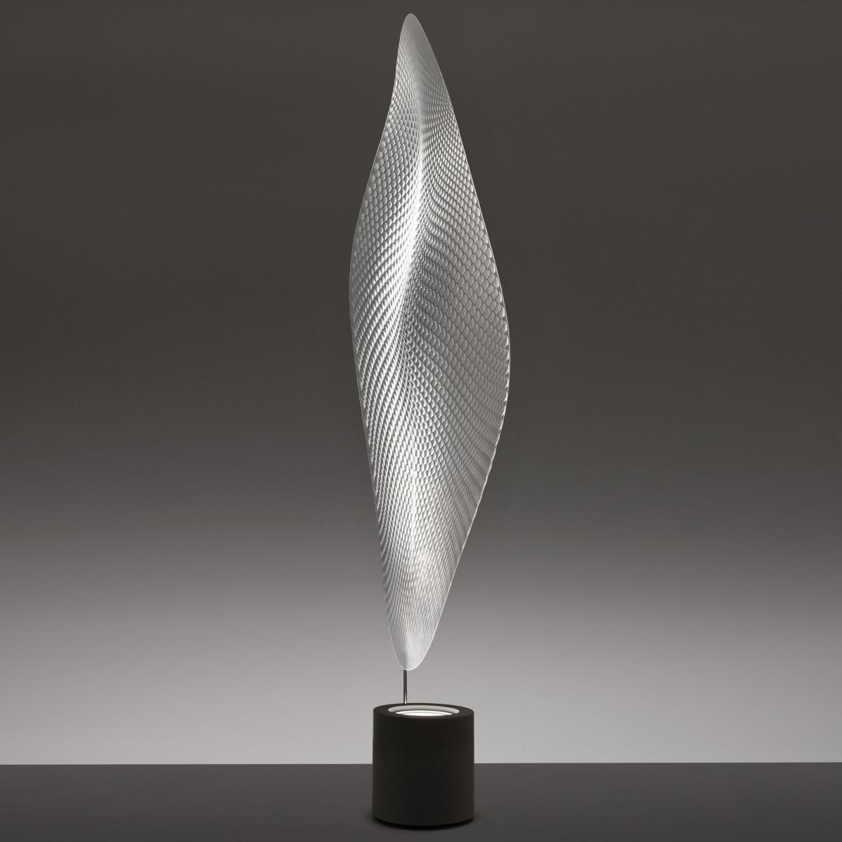 Cosmic Leaf collection a great figure of organic and ecologic design created by Ross Lovegrove embodies organic sensibility and arouses poetic sensations! Cosmic Leaf has sensual and fancy look that provokes emotions. “It looks like a digital leaf from another world, covered in insect or reptile scales that catches light and shade with its body in order to attract its mate. ” Somewhere between contemporary art and design, this floor lamp in naturalistic form is made of technologically advanced materials. It features a round brush metal base and a halogen bulb placed on it. The transparent methacrylate diffuser, supported by a chrome steel stem, has a beautiful geometric pattern. The light source in the base guarantees excellent light distribution on the whole surface of the diffuser. The indirect light goes in all directions and Cosmic Leaf creates a pleasant atmosphere.