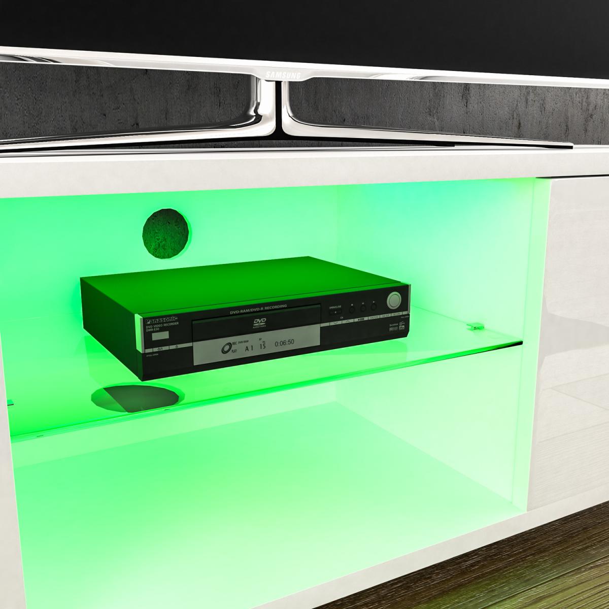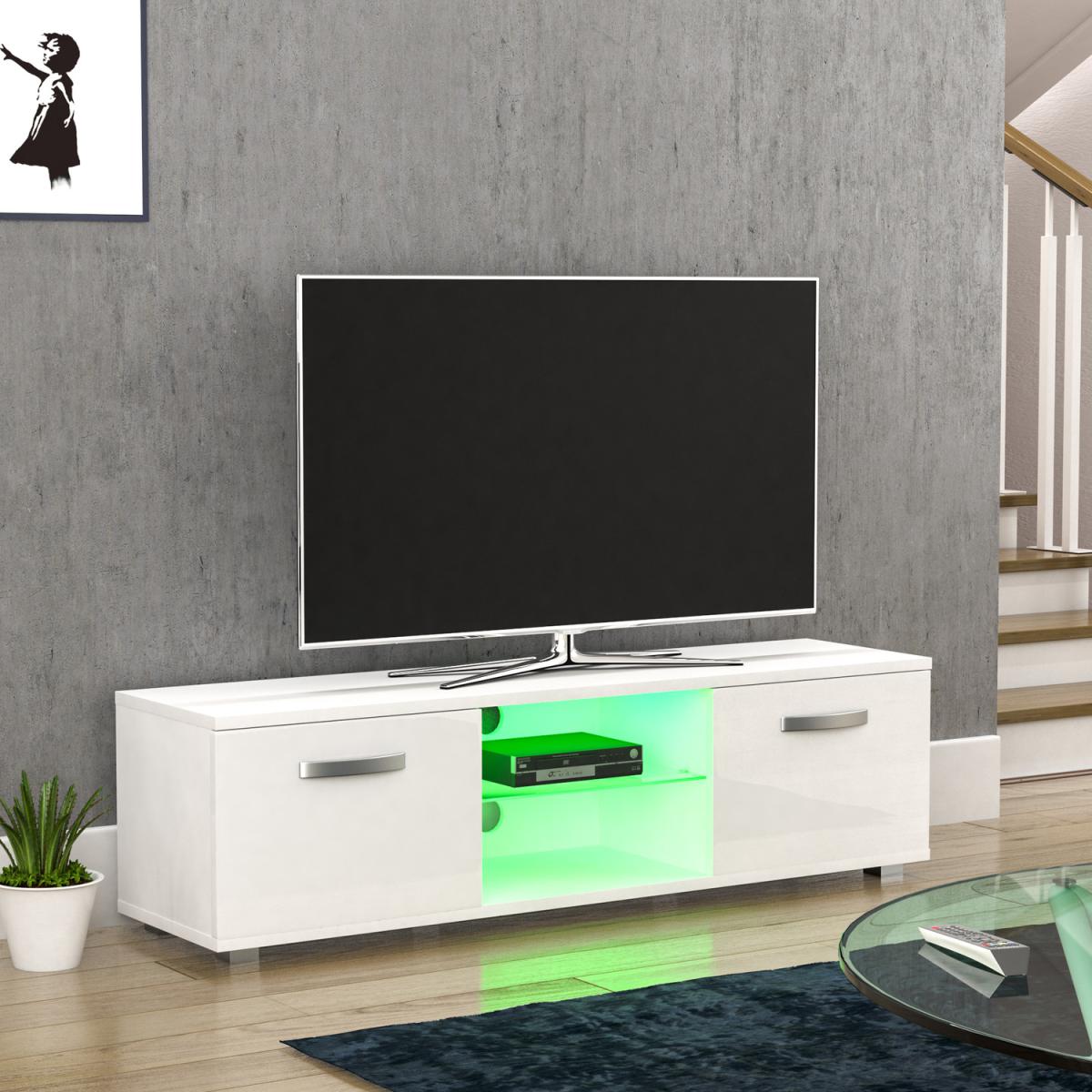 This new and modern stylish product, Cosmo 2 Door LED TV Unit, will help you keep your living room neat and tidy while adding a chic touch. Featuring a stand top, two doors, one glass shelf, rear cable entry and LED lighting, it leaves plenty of space to store all your items whilst transforming your room from any decor to a more contemporary one. The TV unit includes a multi-colour LED backlight which can switch between a variety of colours with various effects such as strobe and fade.