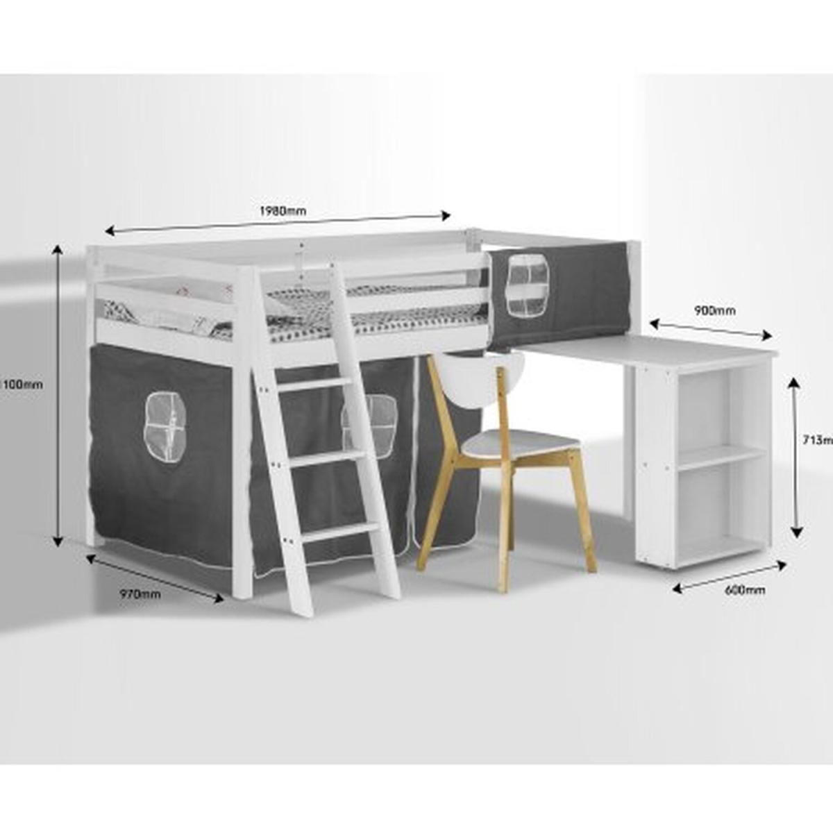 Cosmo Wooden Midsleeper with Pullout Desk and Tent - Grey / Limited assembly required