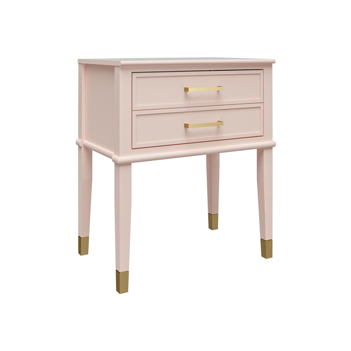 Take note: you can organize your living space and get the style you deserve with the Cosmo. Living by Cosmopolitan Westerleigh End Table. The sophisticated design is accented by trendy gold hardware for a bold Cosmolicious look that we are digging. Here are the deets, the drawer front looks like two drawers but gives you all the space to store larger items out of sight while the spacious tabletop provides room for all of your obsessors. All four wooden sides are finished and available in white or graphite grey, so you can place the End Table wherever your heart desires and nail the decor game.