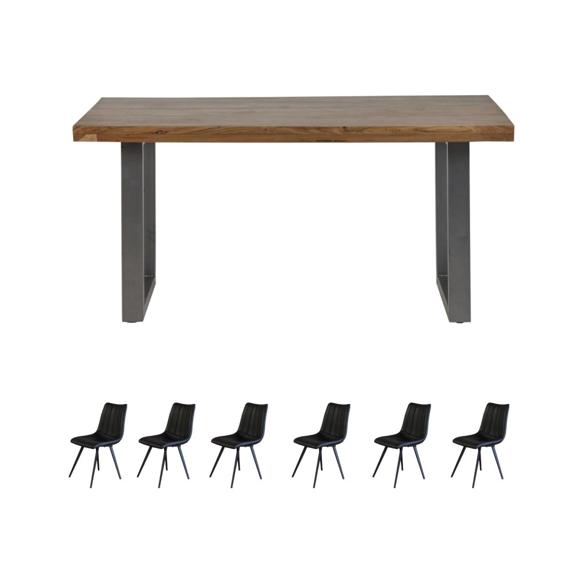 Experience luxury and style with this Industrial Rectangular 6 Seater Dining Table Set. Crafted with 100 wood and metal, this set of one table and six chairs is built to last, giving you years of memorable meals. Comfortably hosting up to six, the modern style with its reclaimed metal and distressed wood offers plenty of room for everyone. Plus, the chairs feature striking vertical accent stitching, adding subtle detail to its elegant design. Their vegan leather seats are easy to clean and provide optimal comfort and relaxation for all.