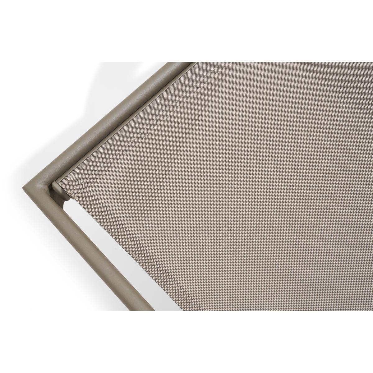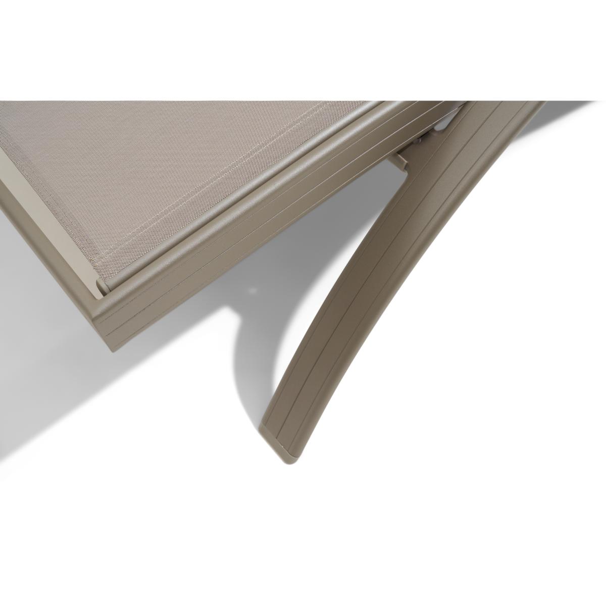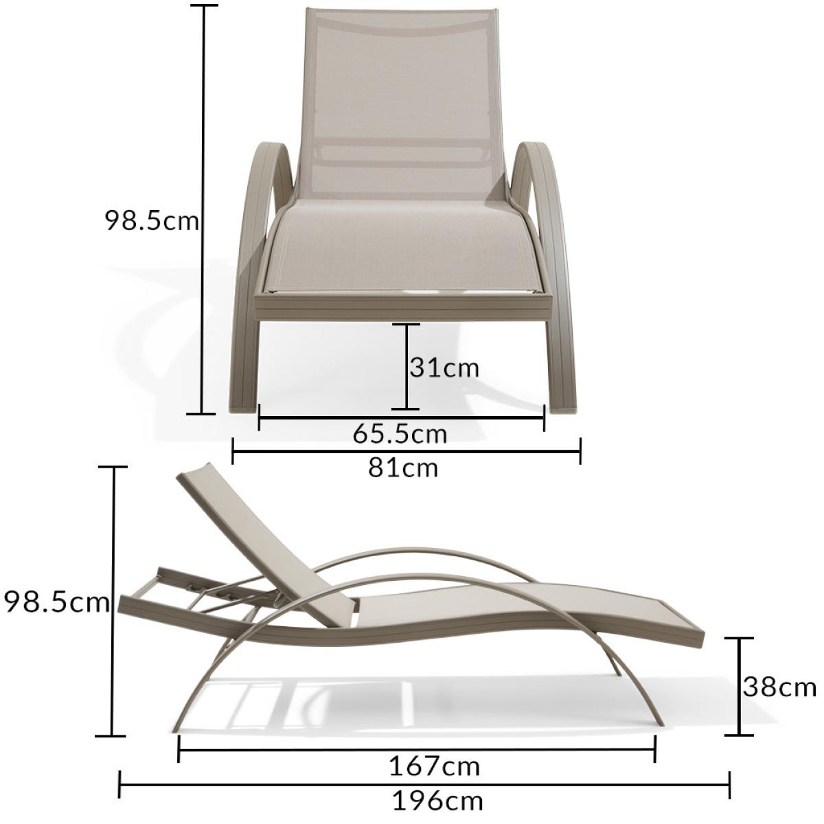 Style, sophistication and finesse. They can all be yours when you relax in the Cosmos lounger. The contemporary design puts this alluring piece in a class of it's own. Sturdy champagne coloured powder-coated aluminium frame. Stylishly arched aluminium legs. Hard-wearing textylene fabric (30% polyester + 70% PVC)Complements the entire Cosmos garden collection. Choose from sophisticated champagne or on-trend grey