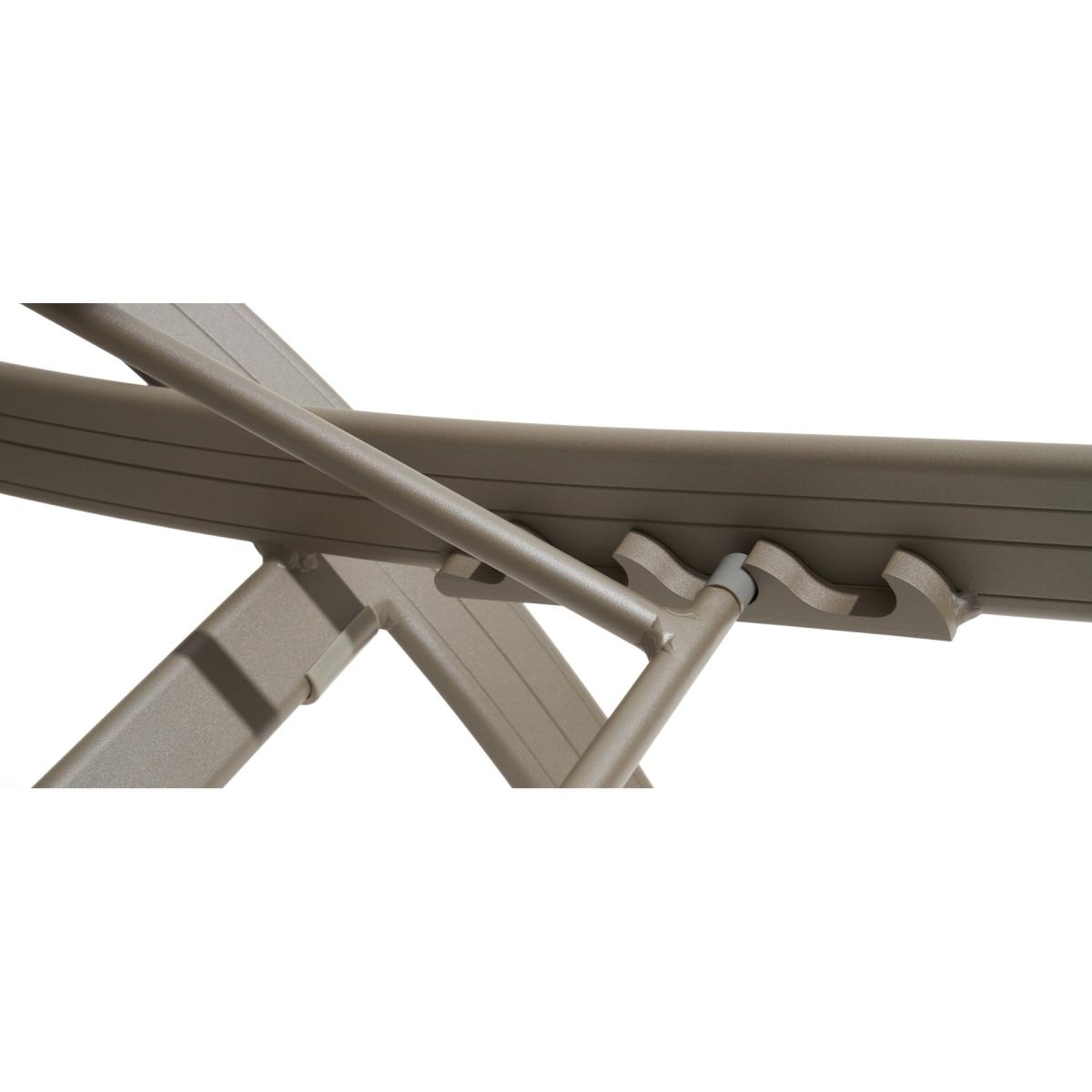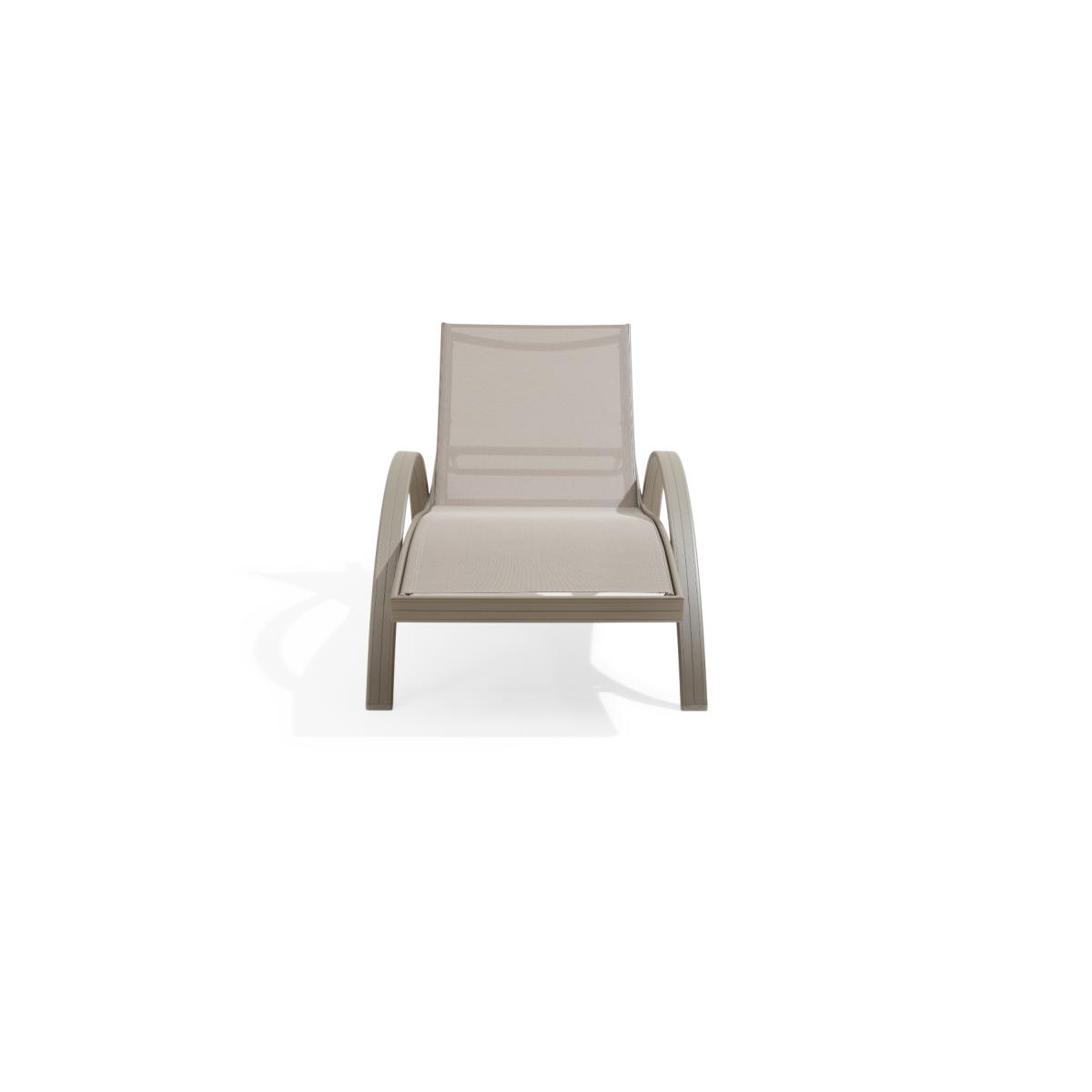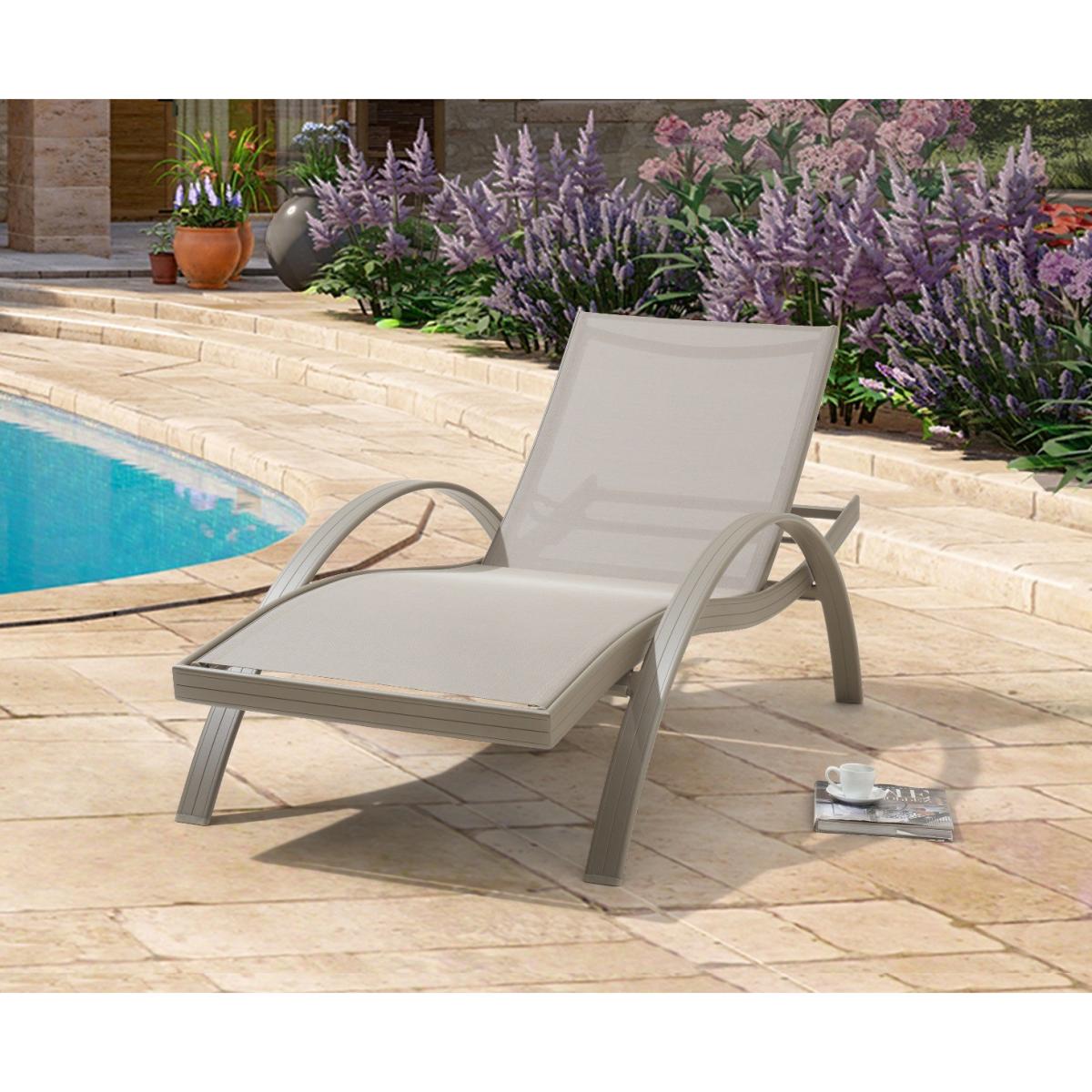 Style, sophistication and finesse. They can all be yours when you relax in the Cosmos lounger. The contemporary design puts this alluring piece in a class of it's own. Sturdy champagne coloured powder-coated aluminium frame. Stylishly arched aluminium legs. Hard-wearing textylene fabric (30% polyester + 70% PVC)Complements the entire Cosmos garden collection. Choose from sophisticated champagne or on-trend grey