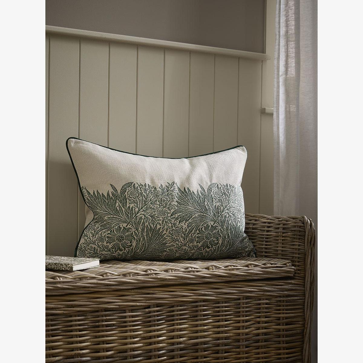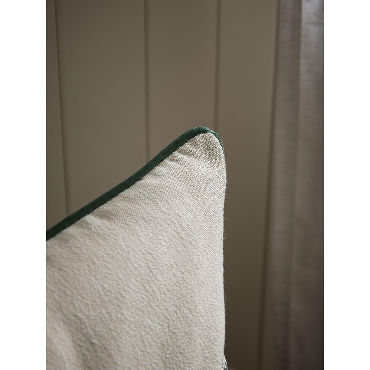 Add a touch of timeless romance to your home with this beautifully detailed cushion, featuring a detailed floral design.  Printed in sage green on a richly textured cream fabric, the delicate floral motif brings a sense of heritage charm and natural elegance to any space.  Finished with a plain reverse, velvet piping, and a hidden zip closure, it’s perfect for layering on sofas, beds, or armchairs.
