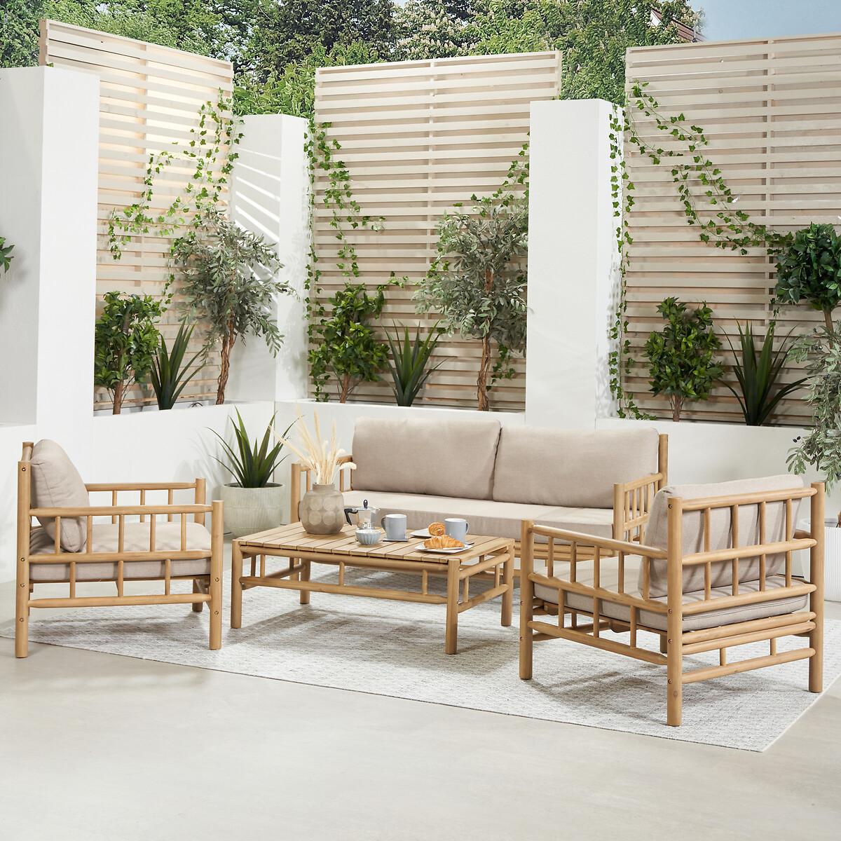 Please note: this product cannot be delivered to all Offshore Islands, Northern Ireland or Republic of Ireland - postcodes starting with; AB, BT, DD, IV, KW1-14, PA21-38, PH, TR17-27 & ALL ROI.Create a modern and airy outdoor area with the Costa Rica Lounge Set, handcrafted in Vietnam. The set consists of a 2 seater sofa, 2 armchairs and a coffee table. The bamboo frame is finished in a Natural Bamboo Effect Acacia Wood. Acacia wood is an environmentally friendly choice as it is a quick growing hardwood, and also tough and long-lasting, making it an excellent choice for outdoor furniture. Each comfortable cushion in a Medium Weave Soft Beige fabric and is season proof, ensuring that all details of this set are of the highest quality, whilst offering a laid back vibe to your outdoor lounging space. Product Dimensions:Chair: 75x75x75cm. Sofa: 75x160x75cm. Table: 60x100x36cm Parcel 1 Packaged Dimensions: 80cmx76cmx36cm Weight: 18kg Parcel 2 Packaged Dimensions: 80cmx76cmx36cm Weight: 18kg Parcel 3 Packaged Dimensions: 160cmx76cmx30cm Weight: 31kg Parcel 4 Packaged Dimensions: 105cmx66cmx12cm Weight: 13kg. Composition: Acacia Wood 80%, PU Foam 15% and Olefin 5%Please note this item is a large piece of furniture that will require some self assembly. Please ensure you have space to receive delivery. This product will be dispatched by one of our trusted suppliers. You’ll be contacted by their selected courier about your delivery. PACIF01