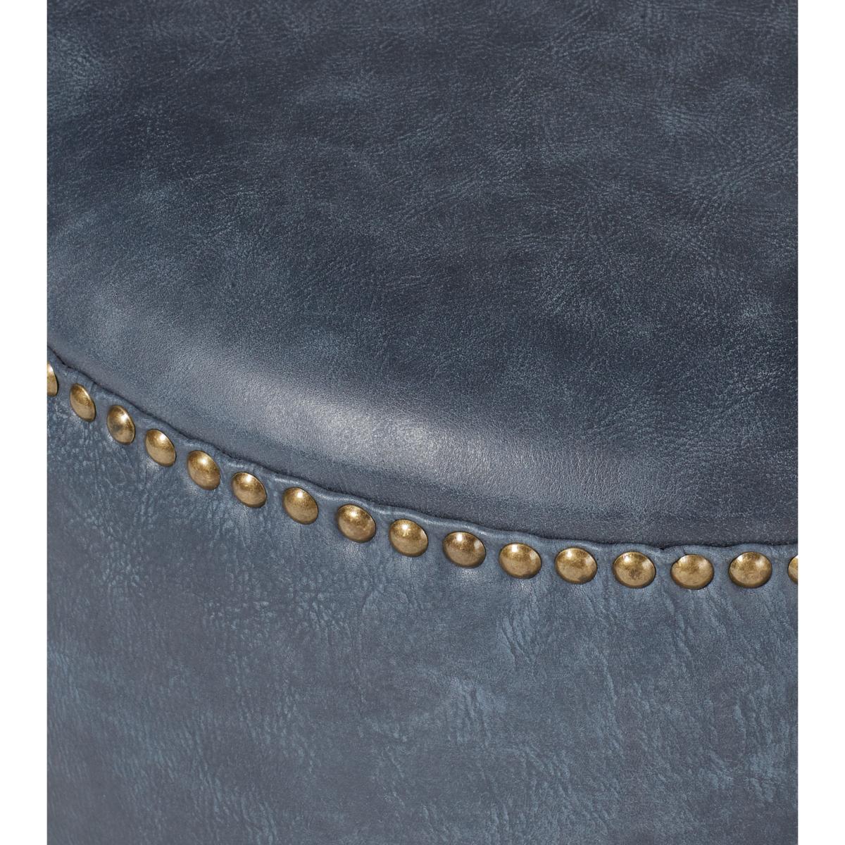 With its compact proportions, the Costellini Ottoman is a versatile addition to all kinds of homes. Featuring leather upholstery offset with a border of antique brass-coloured studs, it's the perfect piece for a dressing room or a sitting room in need of flexible seating and surface space. Costellini Leather Ottoman - Smoke Blue