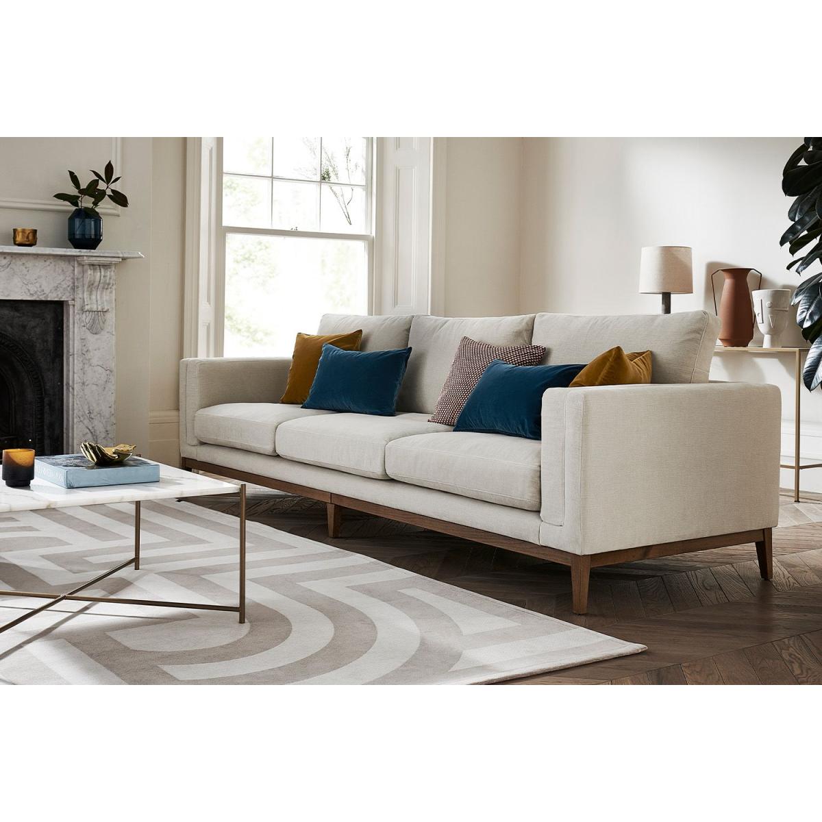 I love this 4-seater sofa for its contemporary yet timeless appeal, with the Raven Speckled Chenille adding a subtle texture that hides minor wear. It's quite versatile, working well in both modern and transitional interiors - pairing effortlessly with materials like brass, dark woods, or soft textiles. Practical styling tips include adding colourful cushions or throws to create visual interest, or pairing it with a textured rug to anchor the space. Its clean lines and neutral colour make it a flexible piece that can adapt as your decor evolves, making it a smart investment for a lively family room or an open-plan living space.
