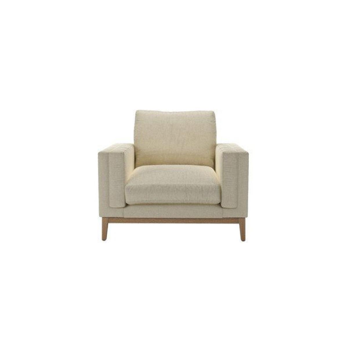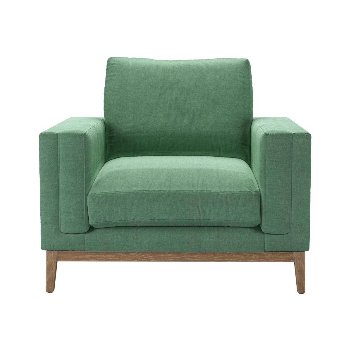 This armchair in celadon is a fantastic addition to both modern and eclectic interiors, offering a pop of colour that feels fresh and calming. I love its clean lines and structured form, making it versatile enough to sit comfortably in a living room, reading nook, or even a bedroom corner. Its easy cotton upholstery makes it practical for everyday use, easy to spot clean, and soft to the touch. Styling tips include pairing it with neutral or muted tones to let the colour really stand out, or mixing in textured cushions for added visual interest. To keep the look cohesive, wooden accents or brass details work beautifully alongside the natural wooden legs, creating a balanced and inviting space.