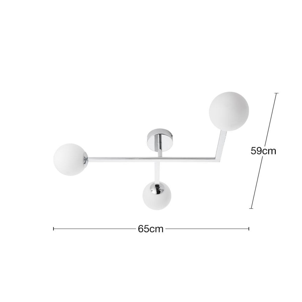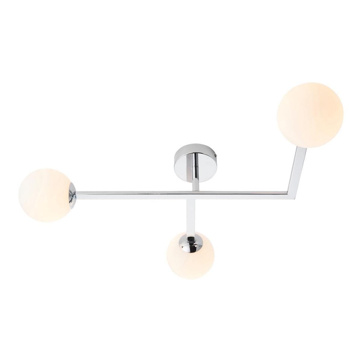 Enjoy a relaxing evening with the Coster flush ceiling light. Its sleek, three-pronged contemporary design is paired with polished chrome metalwork and matte opal sphere glass shades. With dimmable feature, you can create the ideal mood for your living room. It also features an IP44 rating, making it suitable for use in bathrooms and en suites.