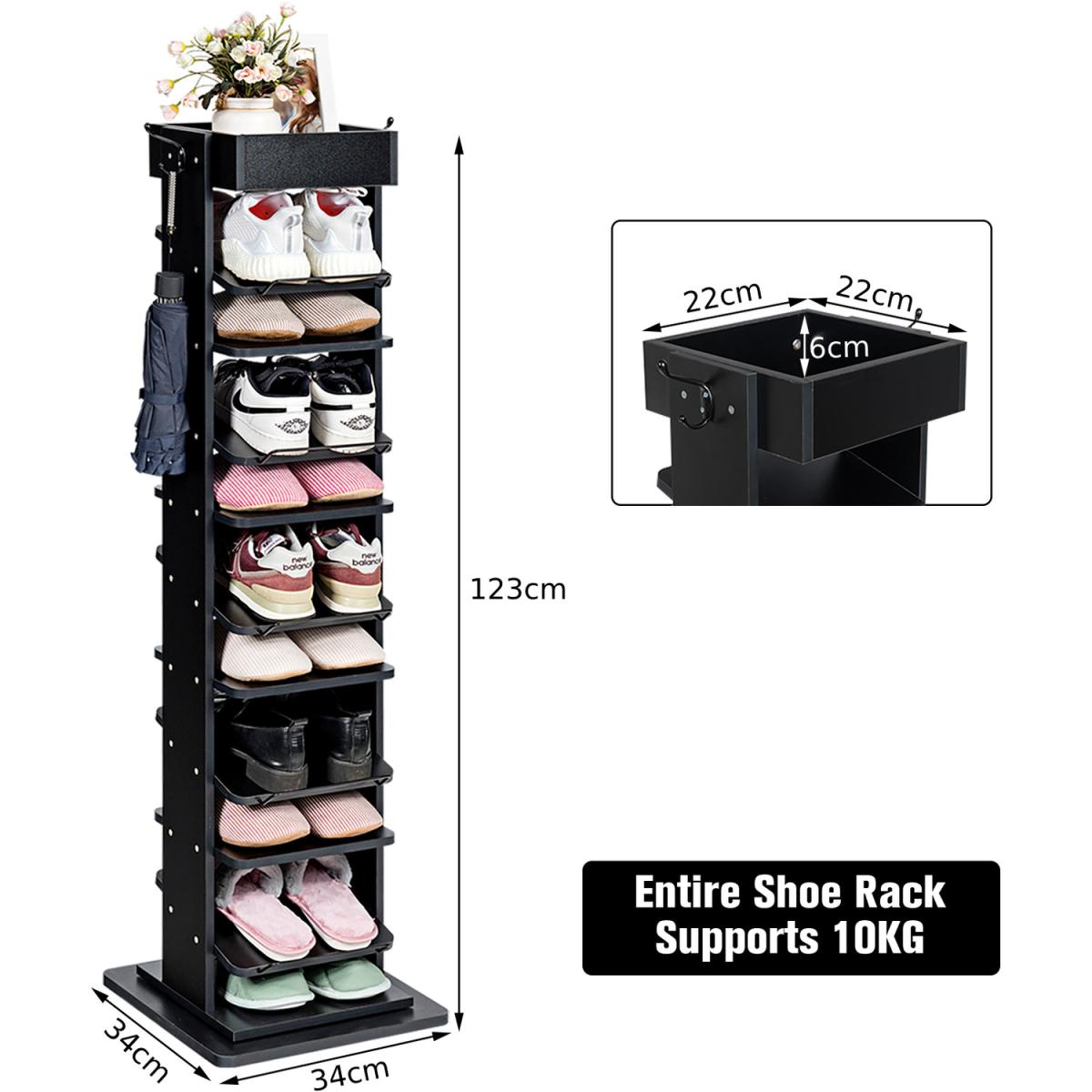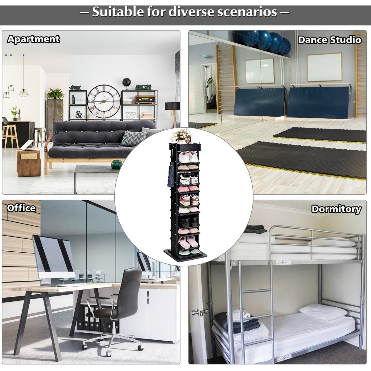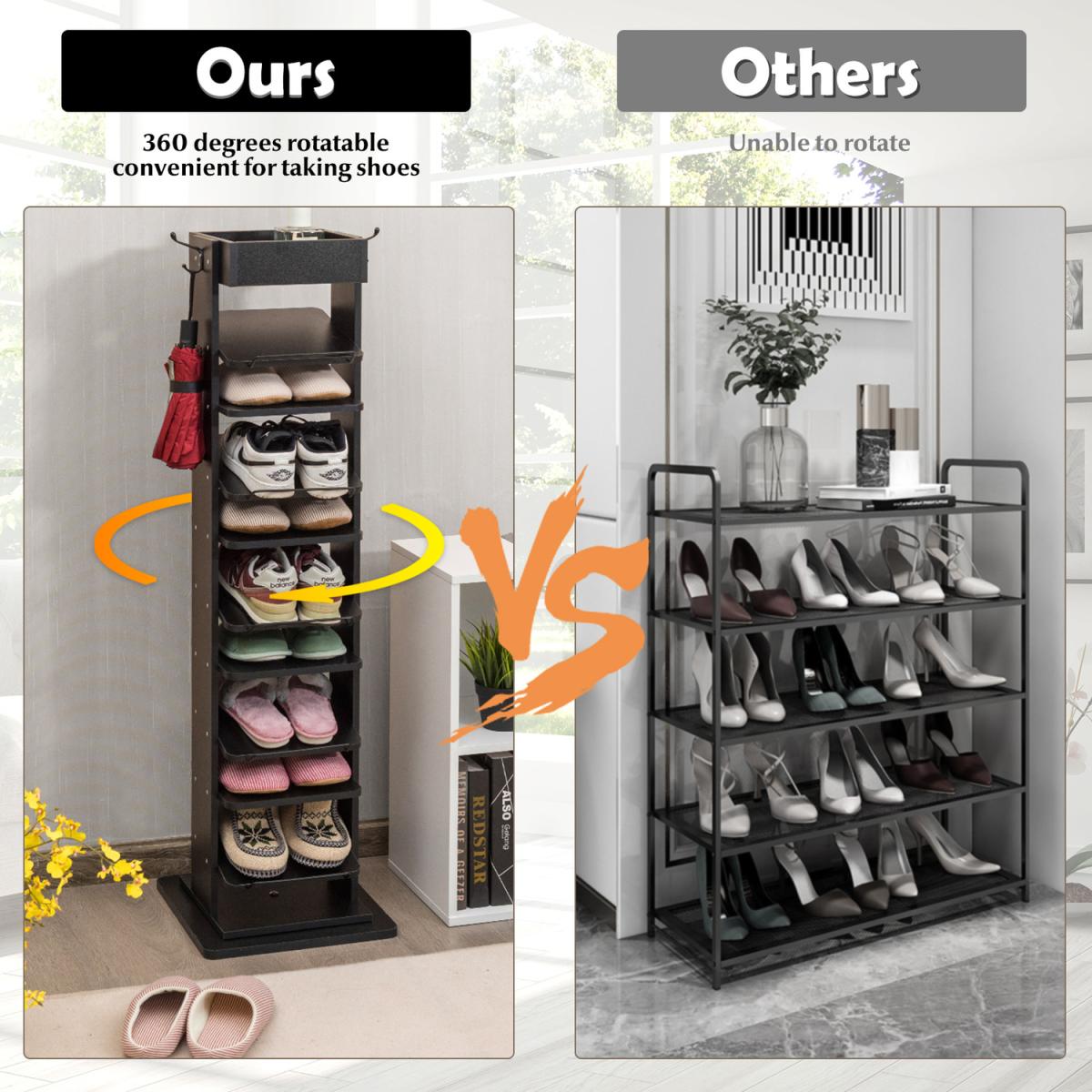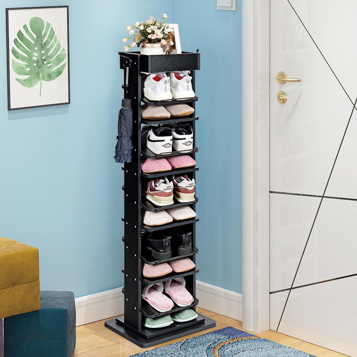 Are you worried that your shoes cannot be found in a suitable space to store them? With a compact design, this rotatable 11-layer shoe rack is the perfect choice for you whether it is placed in the hall, living room, entrance, etc. Equipped with a sloping board design with large intervals, your favorite sports shoes, dress shoes and slippers will have a place. And the non-slip steel bars ensure that your shoes won't fall off when opening the door to start your day. In addition, the hooks on both sides of the shelf and the top shelf provide extra storage space for your small items. If you are looking for a shoe rack, don't hesitate to buy it!