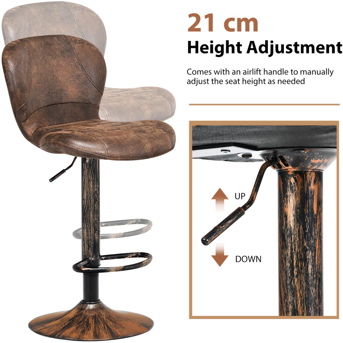 This set of 2 swivel bar stools is perfect to decorate your living room and also adds a retro touch to your office, bar or restaurant. Made of PU leather, the pub chairs set is wear-resistant, durable and easy to clean. The base and footrest are constructed of high quality iron pipe, which makes the stool durable and stable. Filled with high density sponges, the cushion increases comfort and is not easy to deform. Moreover, the height can be adjusted easily and safely by the gas lift. If you like it, Don't hesitate to buy one!