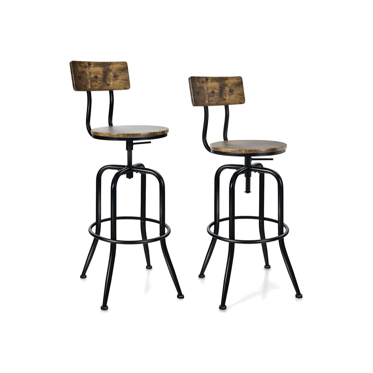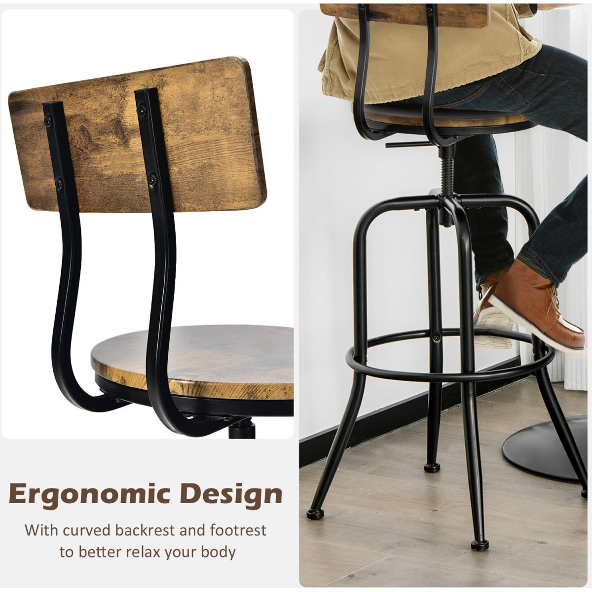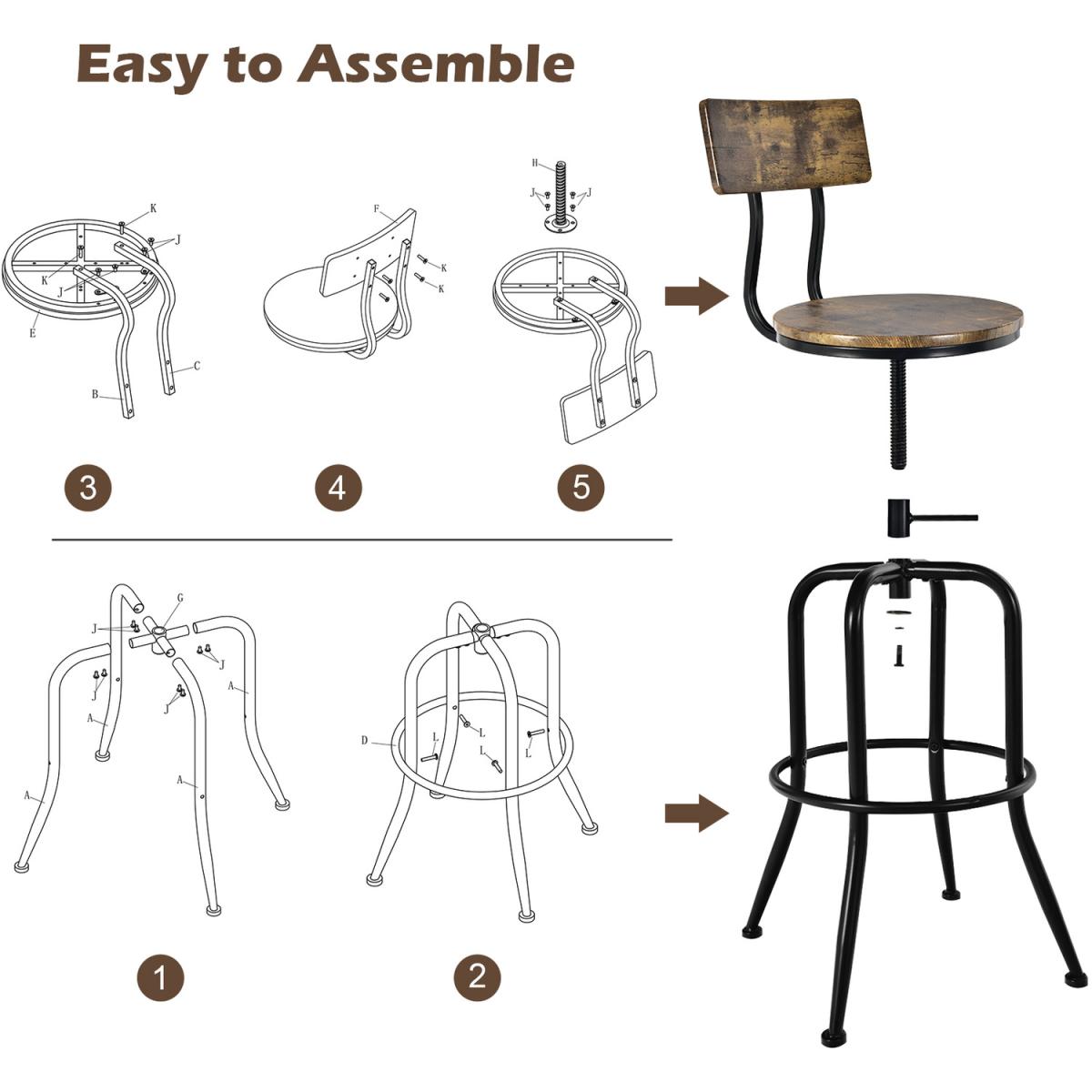 Use this well-designed stool set to enjoy a leisurely lunch, romantic dinner and evening cocktail! The heavy-duty metal frame and MDF seat through exquisite workmanship account for reliable structure. Moreover, the seat height can be easily adjusted from 69-76cm to fulfill different requirements. Ergonomic shaped backrest helps you alleviate back fatigue while a considerate footrest provides you with much more comfort. The stool set is smartly made to be placed at any small spaces like the corner of dining room, and perfectly suitable for any large space as well, including restaurant, cafe, pub.
