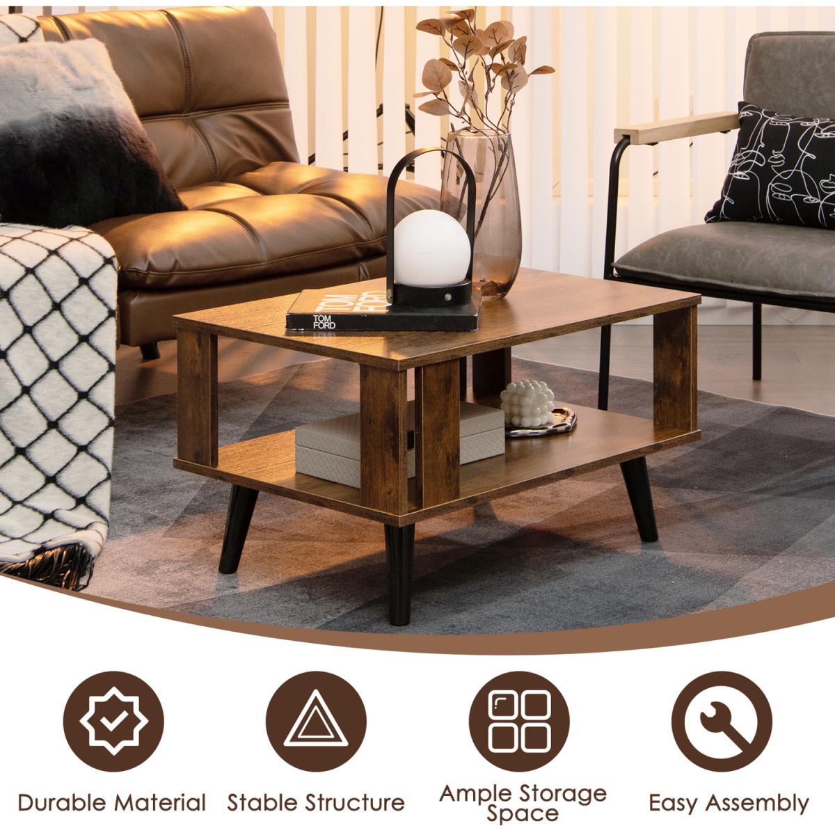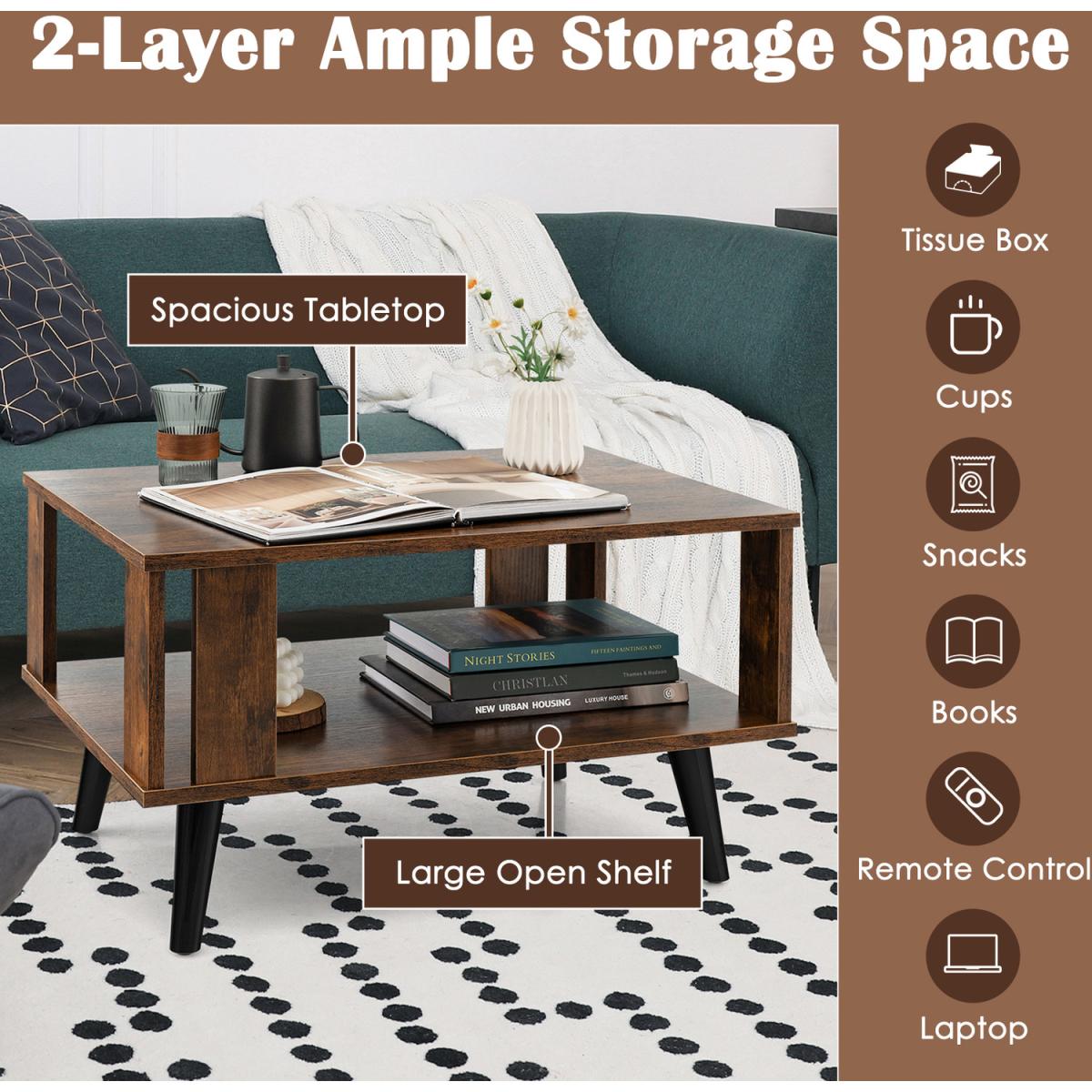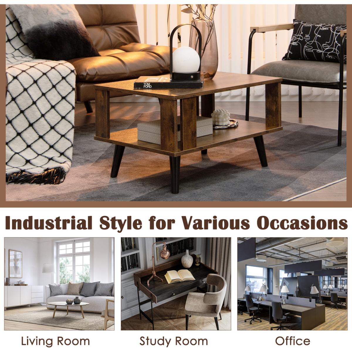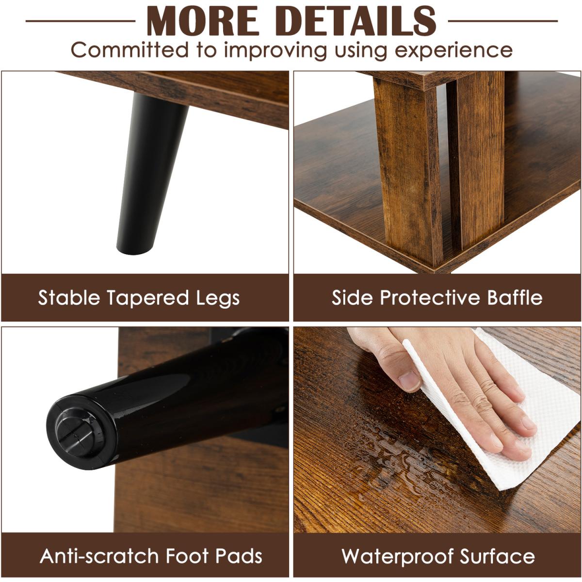 Our small coffee table is a perfect choice for any room, either for storage or decoration. Designed with a spacious tabletop and an open shelf, the coffee table provides ample space for snacks, drinks, family photos, books and other items. It not only keeps the room clean and tidy but also adds a rustic charm to your living space. The industrial design matches different decoration styles, making the centre table a versatile addition to the living room, bedroom, office, etc. Moreover, made of premium engineered wood, the sofa side table is rather sturdy and durable. The non-slip foot pads improve overall stability and avoid causing damage to the floor. As for daily cleaning, the waterproof surface and 16cm ground clearance bring you great convenience.