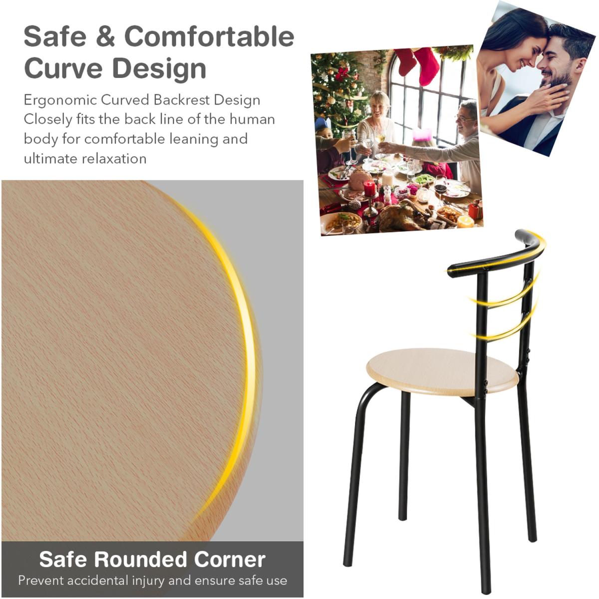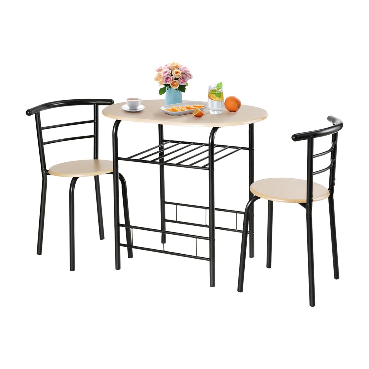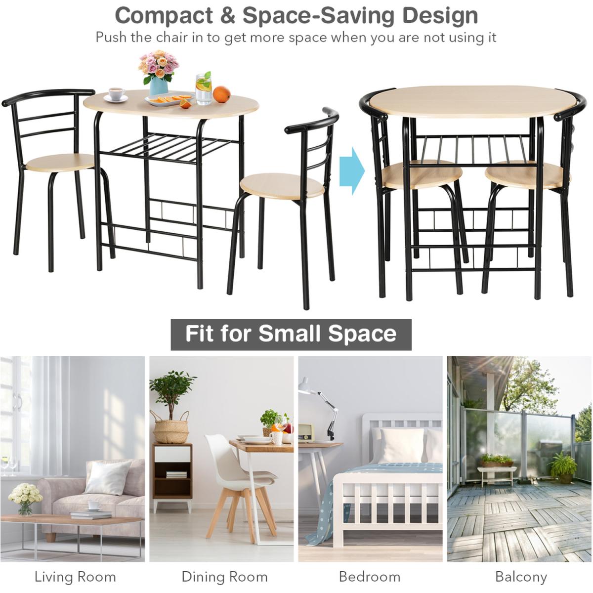 This style table and chair set with classic and simple design add elegance to your home kitchen and dining room, which is easily incorporated into many decorations. Made of composed board and painted iron pipe to form stable structure. Under the table is an additional storage rack, which can be used to store wine, magazines, cups, and bowls according to your needs. The curved backrest is ergonomically designed to make you feel comfortable. Compact size with big storage space makes it perfect or tiny apartment or your dining room or any other limited spaces. This dining set is suitable for your pool side, balcony, living room, garden, patio, etc.