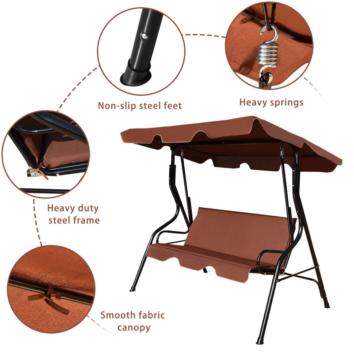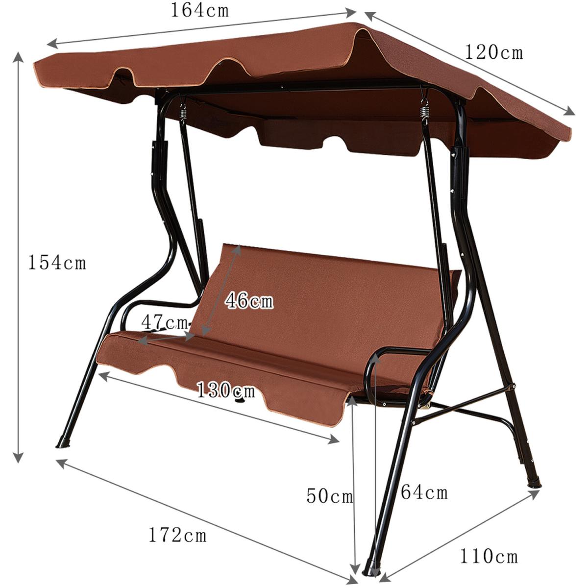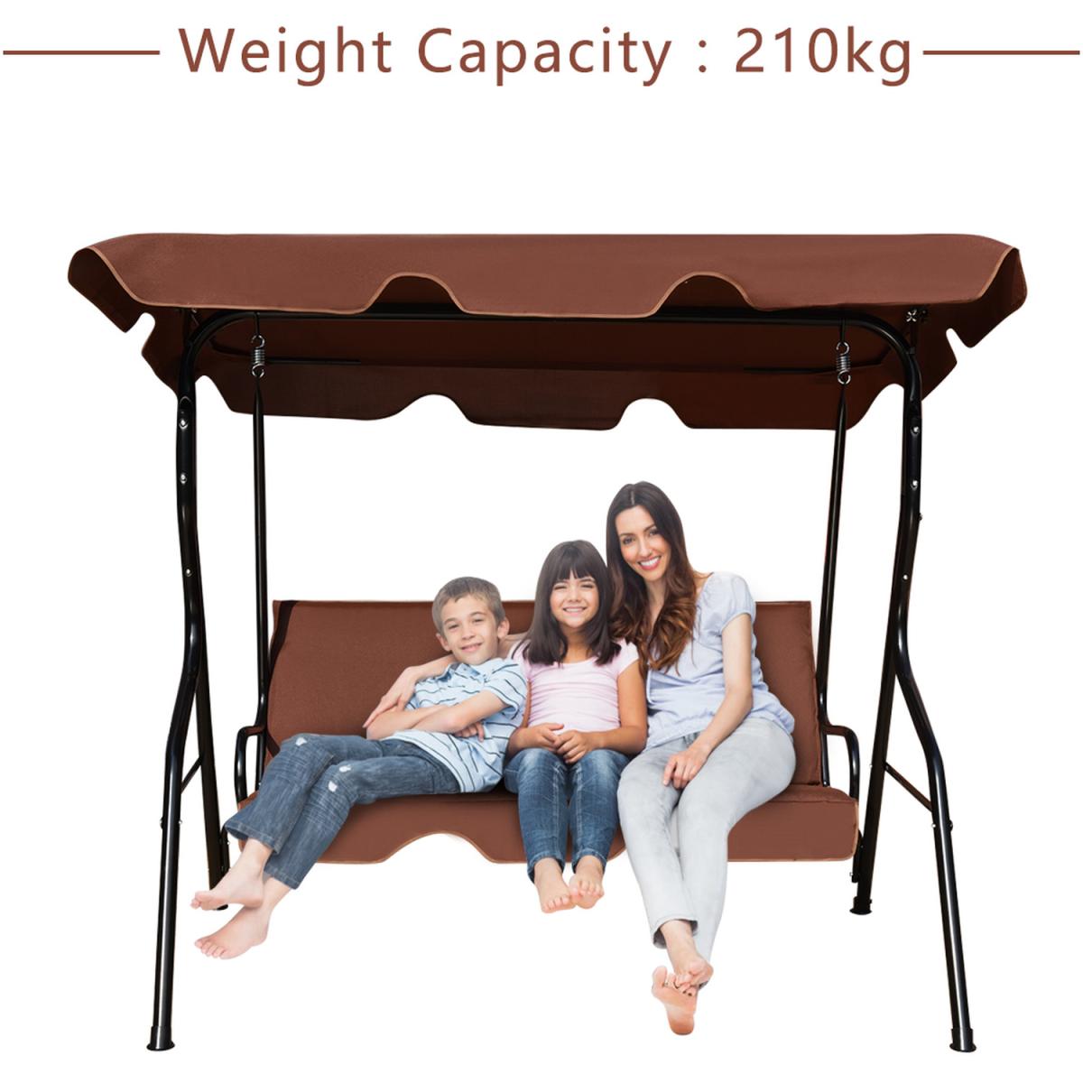 Our 3-seater swing chair is made of heavy-duty steel frame with an adjustable canopy on the top to provide optimal shade coverage. The canopy can also be disassembled, which is convenient for daily cleaning and maintenance. This seat, full of breathable and high-density foam, is spacious enough to accommodate 3 people, so you are even able to lounge in the shade on this swing and read a magazine. Designed for ultimate comfort and style, it allows you to gently sway in the breeze and enjoy the good weather with family and friends. Don't hesitate to let this swing chair add a touch of elegance to your garden or backyard!