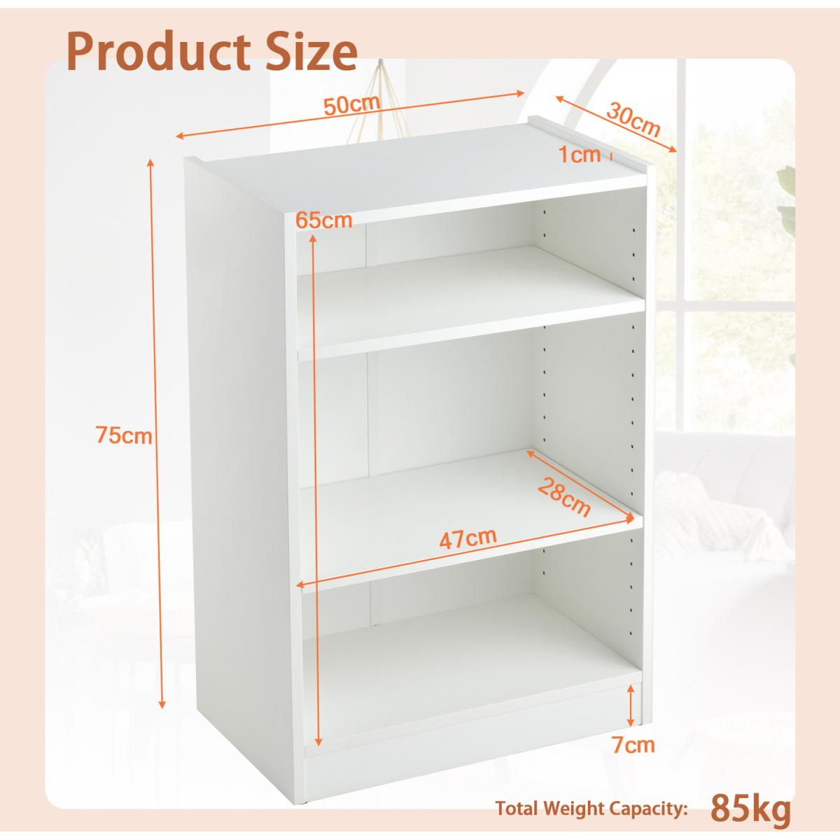 The bookcase combines modern simplicity and classic practicality, which will undoubtedly be a perfect centerpiece in your home! With wide cabinet top and 3-tier shelf, you can store all sorts of essentials inside, which is easily accessible as well. 18-position adjustable shelves allow you to customize storage space with great convenience. Equipped with anti-toppling device, the storage organizer is not easy to wobble or collapse. In addition, its modern design makes it possible matching well with different style, either for living room, bedroom and study.