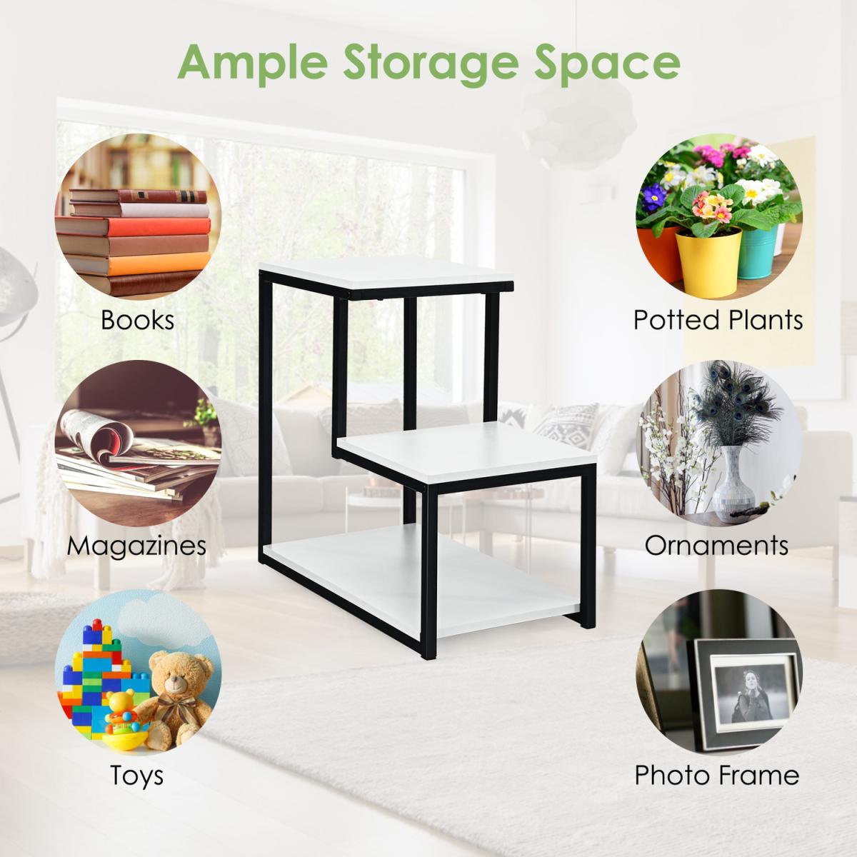 This vintage style end table with elegant glamour speaks to you!Ample display and storage rooms with special ladder design definitely add practical and aesthetic pleasing to this piece of furniture. Solid steel structure with thick plates shields this side table against water, daily wear, rust, and tipping potential. Inspired by space-efficiency, this end table is a great addition to your bedroom, living room, and office. In addition, the installation is easy and fast with detailed instructions. Upgrade your home interior with our 3-tier side table!