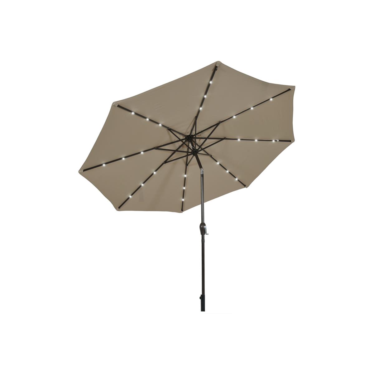 Our patio umbrella with lights is not only the best choice for shading during the day but also for lighting at night!Made of premium polyester fabric, this umbrella shows excellent durability and will remain elegant even when used outdoors for a long time. The 4cm diameter iron pole and 8 sturdy ribs provide strong support to help resist warping and other damage in the wind. The convenient button tilt mechanism can adjust the angle of the canopy to block direct sunlight in all directions when the sun position changes. The innovative crank allows you to effortlessly open and close the umbrella in seconds. Moreover, with 24 built-in LED lights, our patio umbrella will create a romantic atmosphere in the evening.