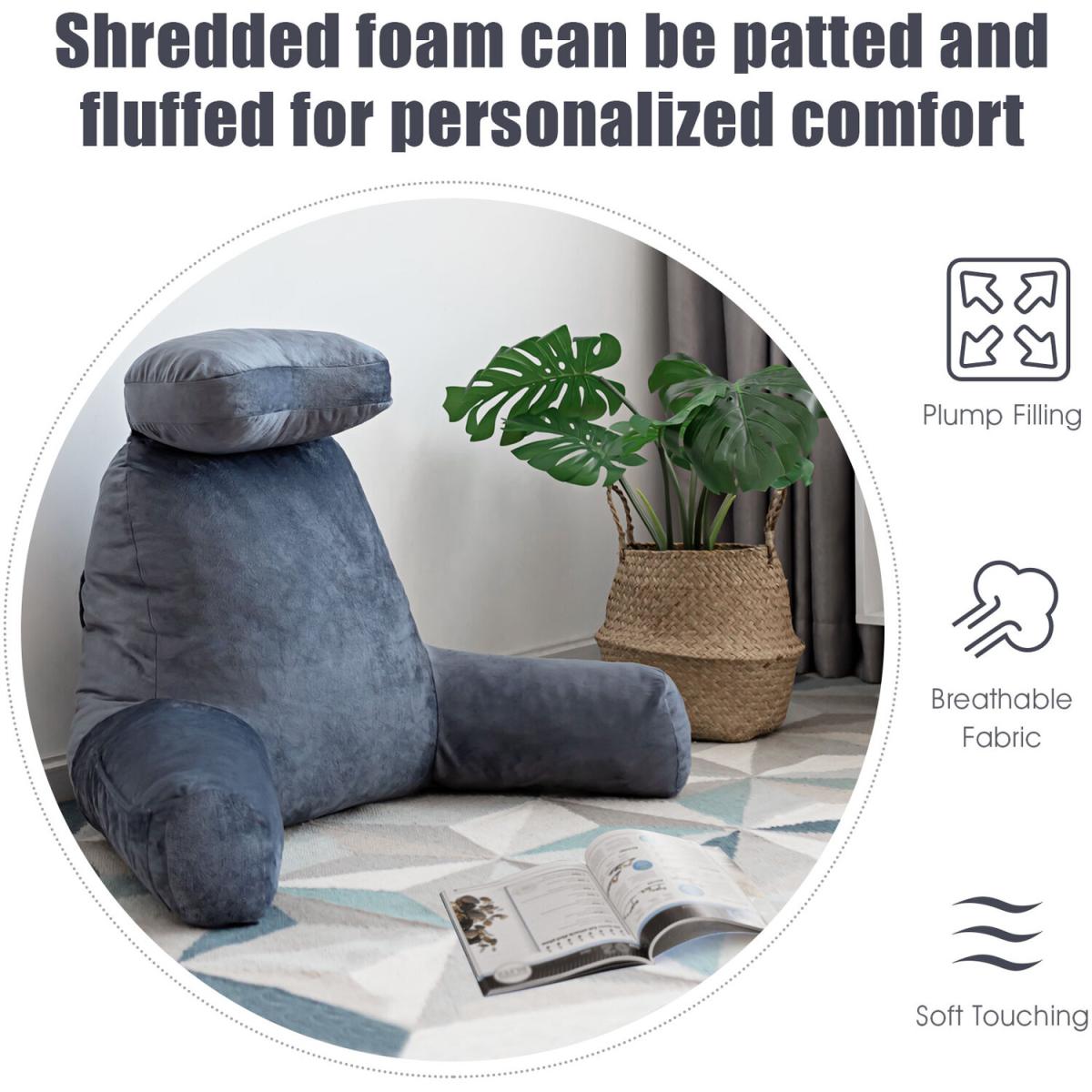 Are you ready for the experience of luxurious comfort with our reading pillow? Drift off on a sea of comforts with this plump pillow wrapping around you like a warm hug and it will envelop you as it fitting the natural body shape, supporting your head, neck, back and relieve your arms soreness with the built-in big arm rests. Aside from being the perfect companion for a page-turner reading or late-night TV watching, this pillow also suitable for kids who love reading comics and playing games on the floor and teens can lounge on the pillow when they have friends over or play video games!