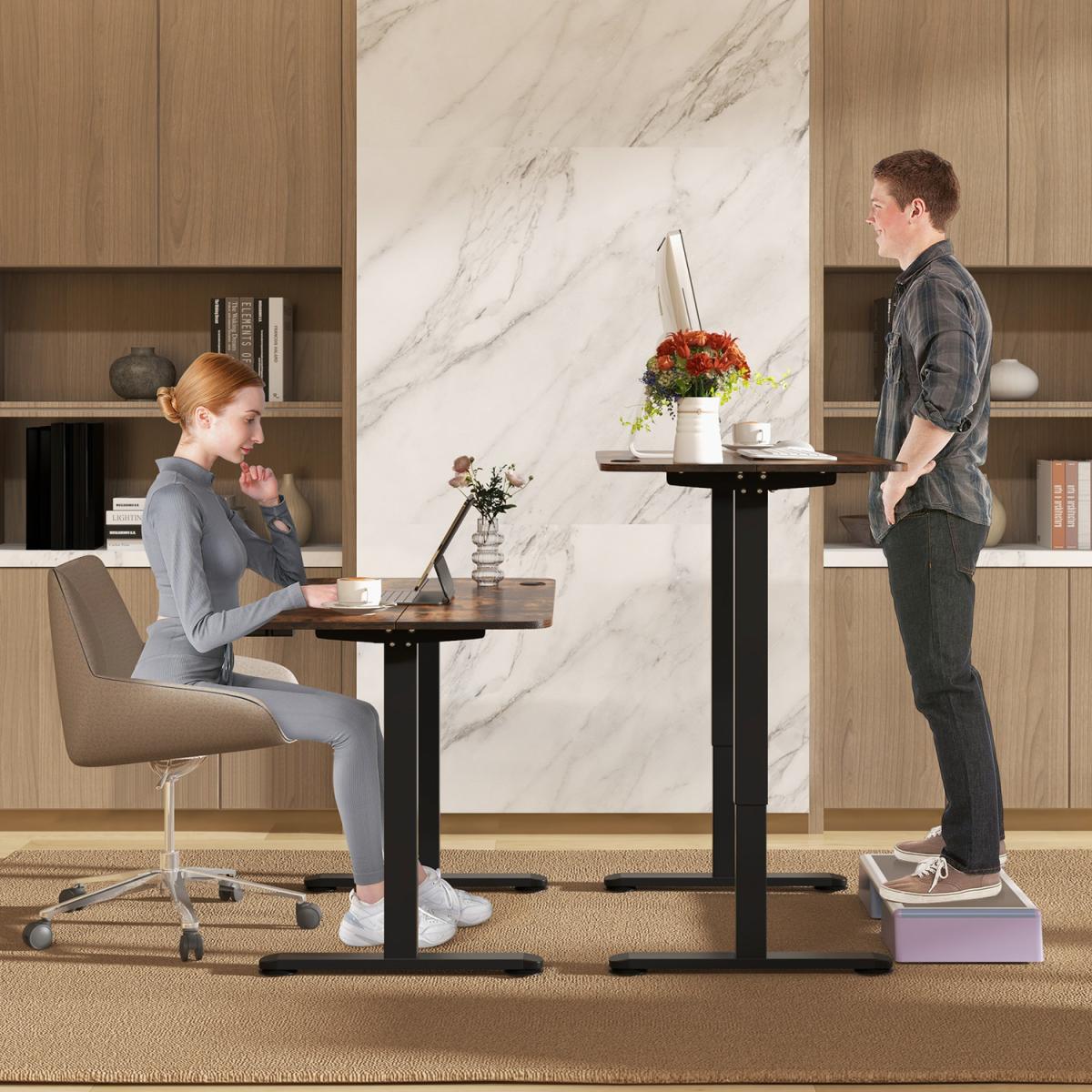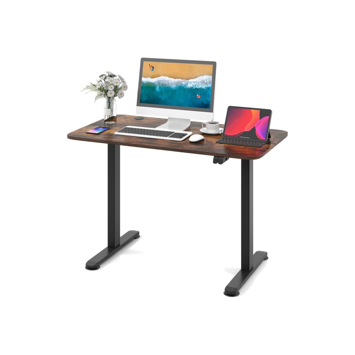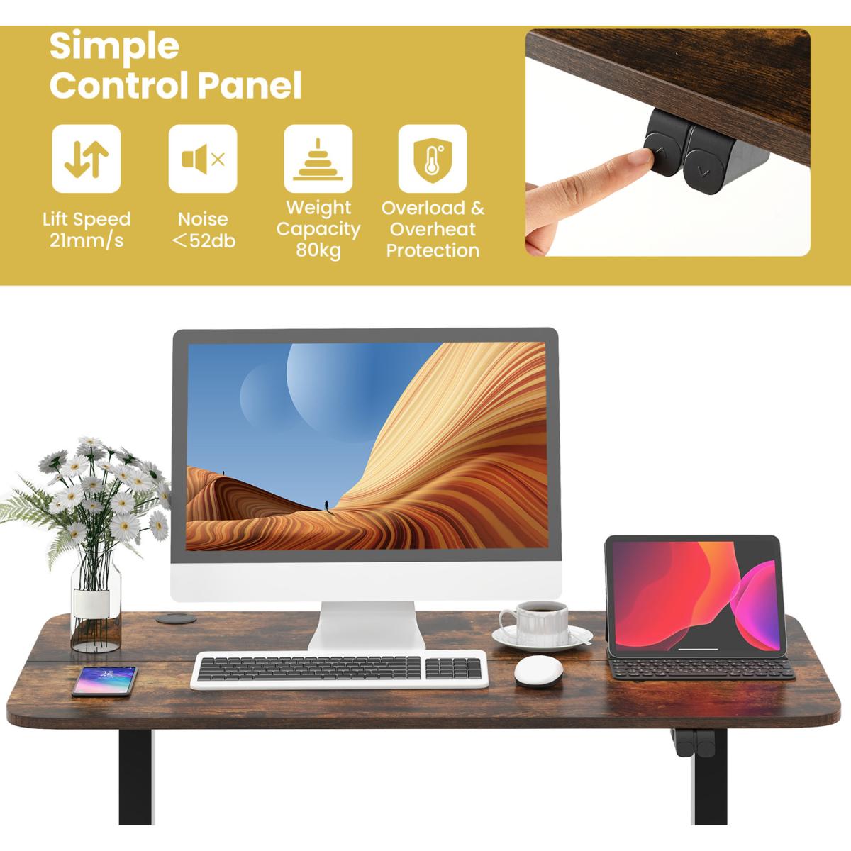 Enjoy comfortable working position with this ergonomic electric sit to stand desk!Equipped with an easy-to-operate controller and electric lifting system, the standing desk offers flexible height adjustment with the range of 72cm - 115cm. Moreover, high quality motor ensures smooth adjustment with low noise, thus creating a quieter place to work. Compared with other ordinary desk, you can choose to sit or stand while working and studying for less fatigue. The spacious desktop provides you with sufficient space to place a variety of office essentials. For more convenience, there is cable management hole to make a tidy and clean working environment. Solid metal frame also ensures great sturdiness and long-lasting performance. The electric standing desk with good quality and high reliability is a perfect option for home and office!Note: Don't overload on the edge.