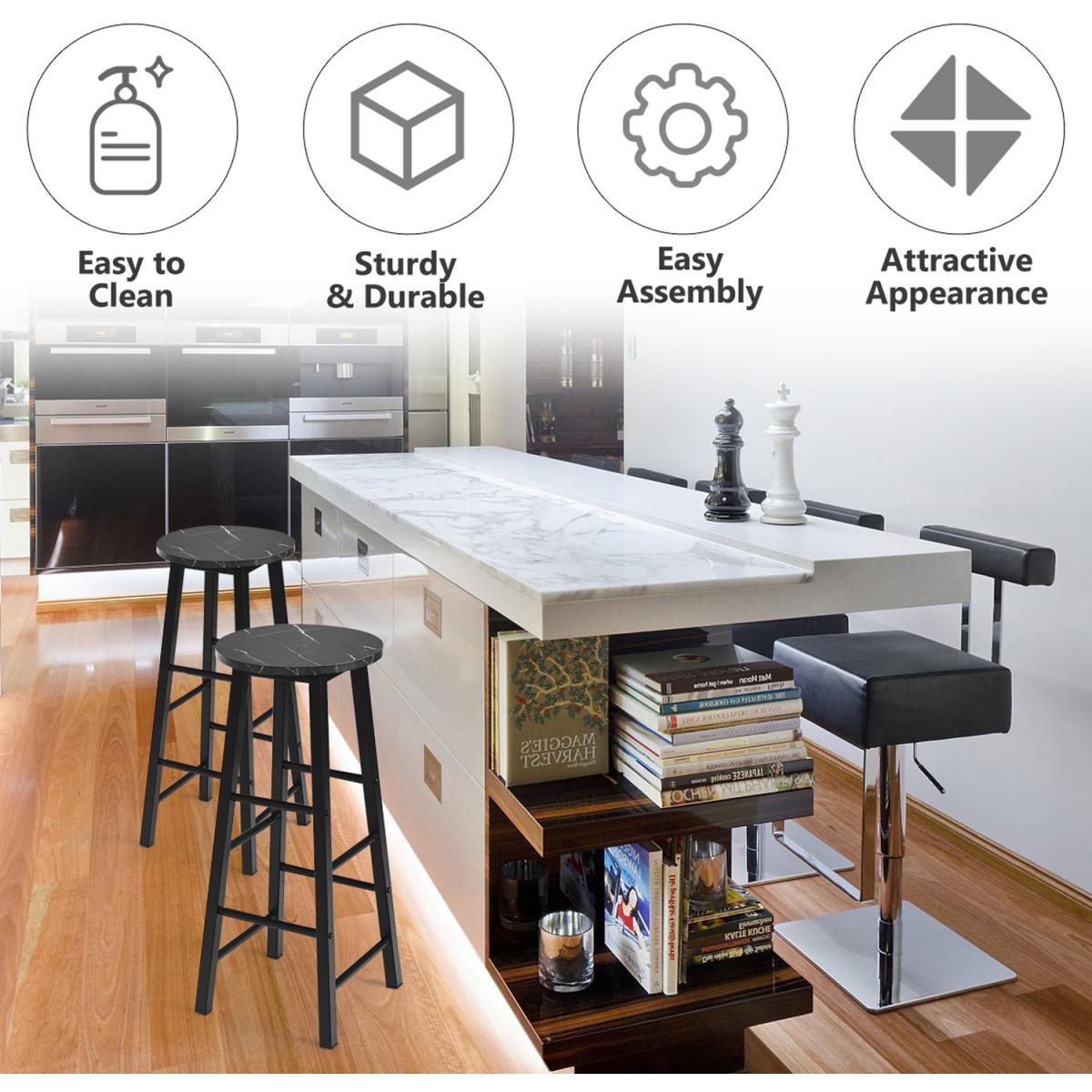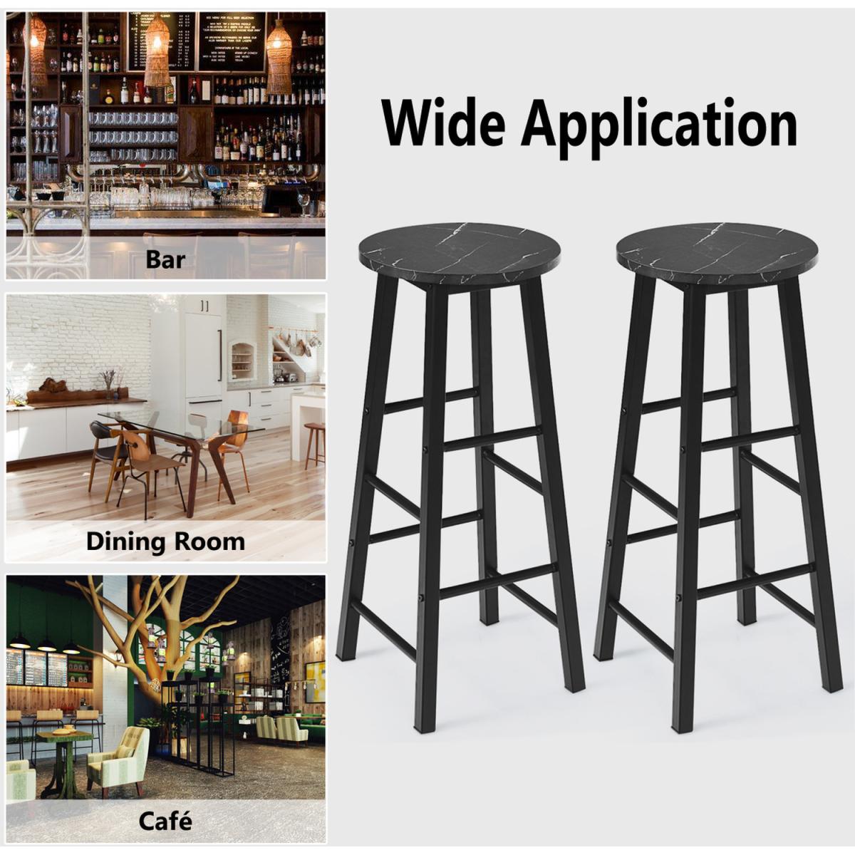 If you are eager to brighten up someplace with brilliant ideas, then why not bring an effortlessly attractive look into your kitchen counter, restaurant or pub with our bar stools?This pub height bar stools set will give you great satisfaction from stylish design to comfortable sitting. Constructed of high-quality particleboard, the stool features great durability and toughness. 4-sided footrest can not only rest your feet but also plays the role of reinforcement. Sturdy and thickened metal frame will support you powerfully when you sit in the front of bar counter to enjoy a drink.