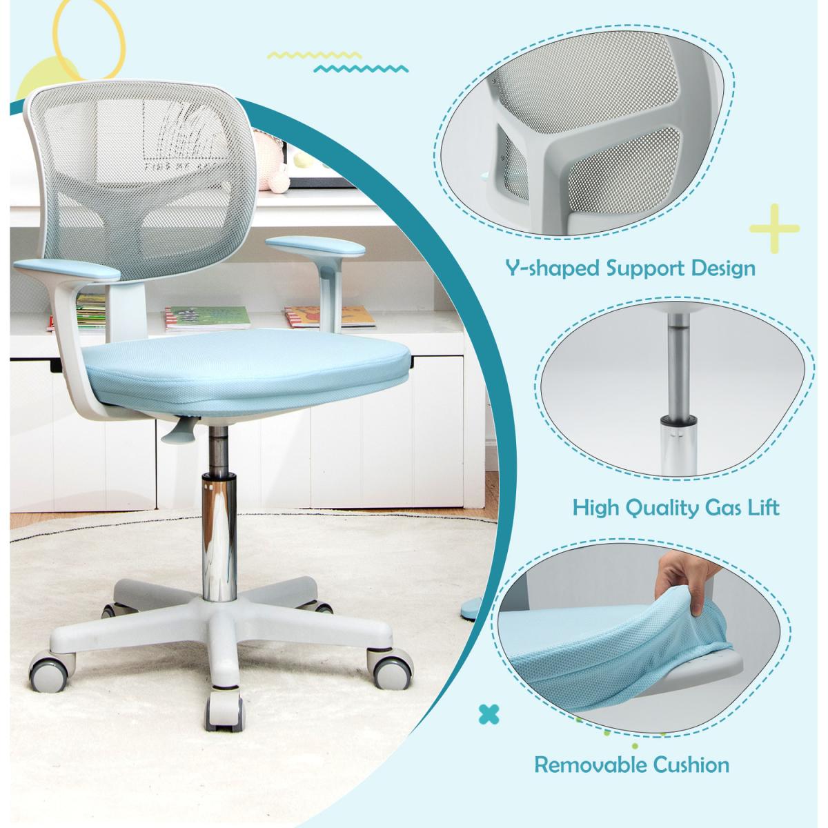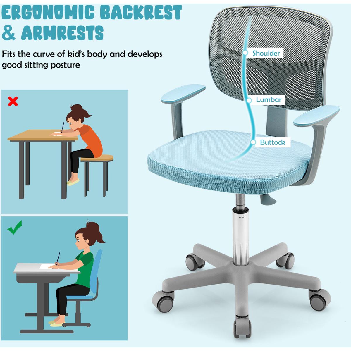 Support your kids' study with our ergonomic kids' desk chair!This kids studying chair is equipped with 80 to 92cm height adjusting functions to match with your kids' growing heights. It is advocated for 3-10 year-old kids. The swivel seat base amuses kids when they get tired of learning, while the sit-brake wheels help kids focus on learning. This kids' chair supports long-hours seating with sponge-padded cushion and mesh fabric for extra comfort as well as a middle-high back with lumbar support to reduce the fatigue. It urges the right seating posture, which is an ideal addition for home, office, educational institutions.