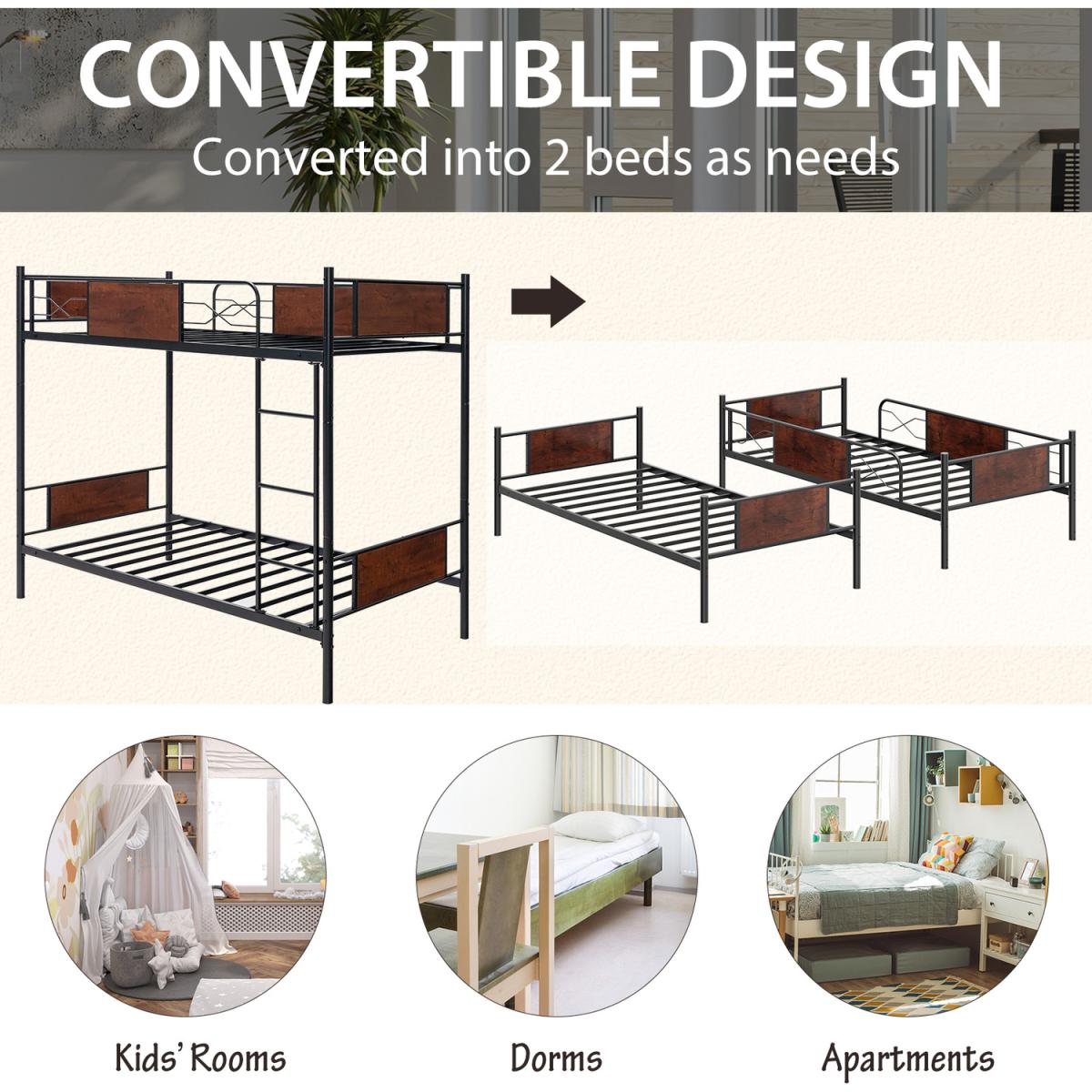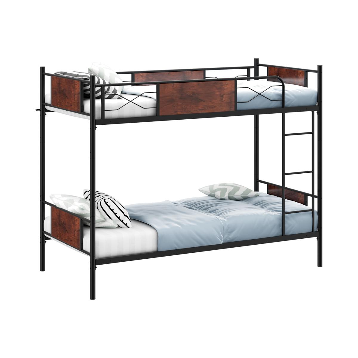 Are you looking for a space-saving bed frame for the kids room or guest room? Take a look at this metal bunk bed frame! The single-over-single design saves a lot of floor space. And with a sturdy ladder, you can easily climb up onto the upper bed, which is surrounded by 30cm tall guardrails to ensure you a sound sleep. Besides, there are anti-toppling devices so that you do not have to worry about it tipping over. What is more, the bunk bed can be converted into 2 single beds as needed. And the bed is raised from the floor by 22cm, allowing you to make full use of the underneath space for storage or cleaning.