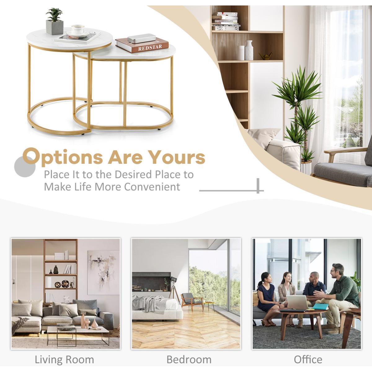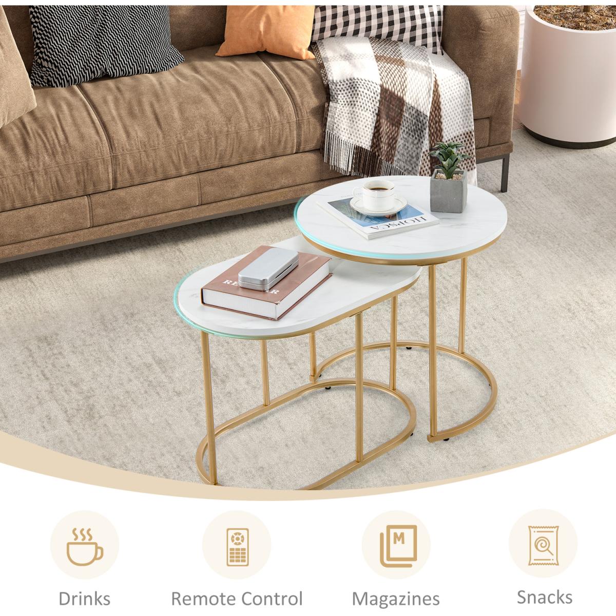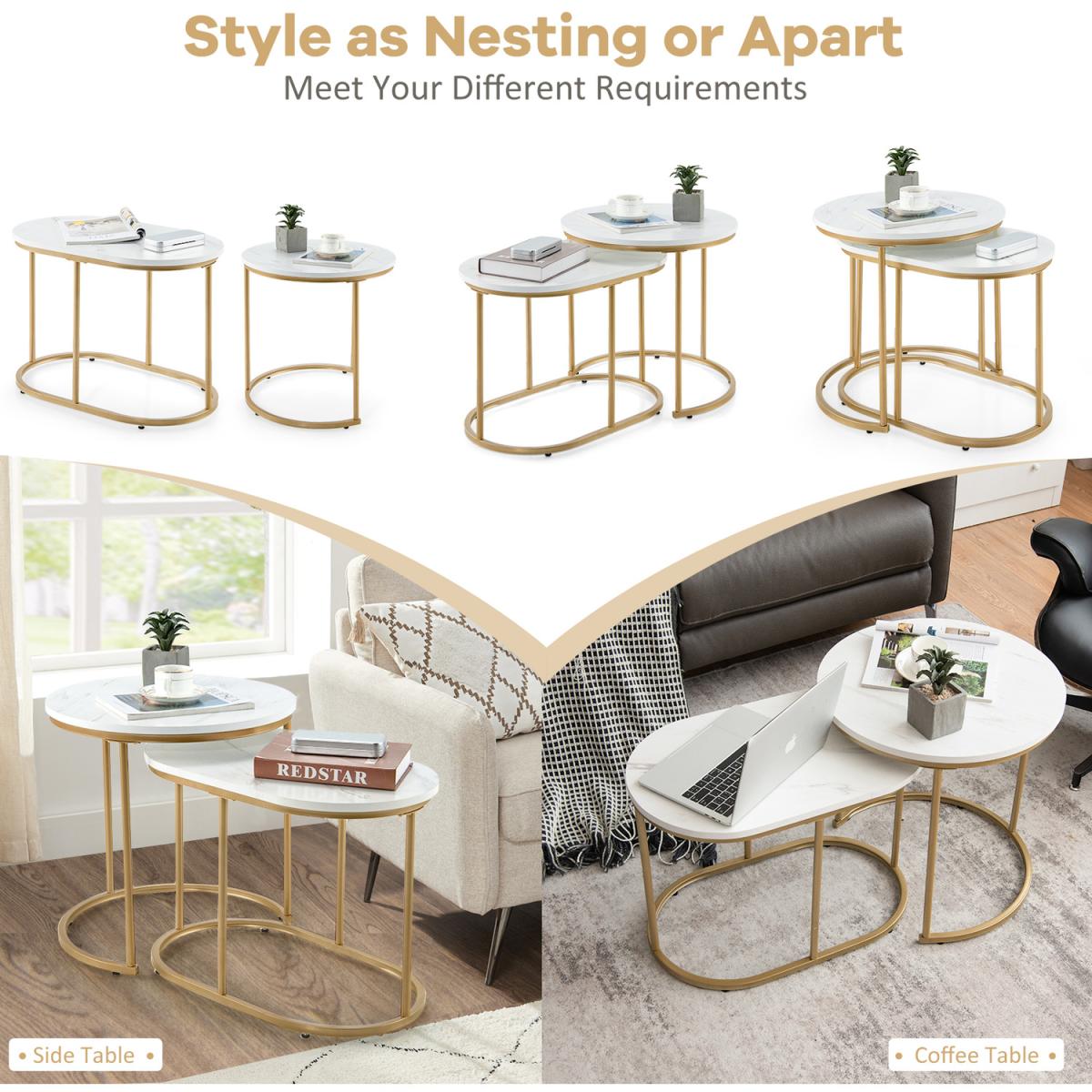 If you are looking for side tables which combine practicality and beauty, then our coffee tables will certainly bring you and your home a surprising addition. This end table set offers ample space for storage yet doesn't occupy much space. It is crafted with reliable construction to guarantee great stability and durability and provide high performance for your daily use. The space-saving nesting design allows you to place two tables in different ways freely by yourself. All in all, this coffee table set will work well under versatile circumstances for various purposes and serves as a beautiful decor as well. So, come and pick this set of 2 side tables for a simpler and more convenient life!
