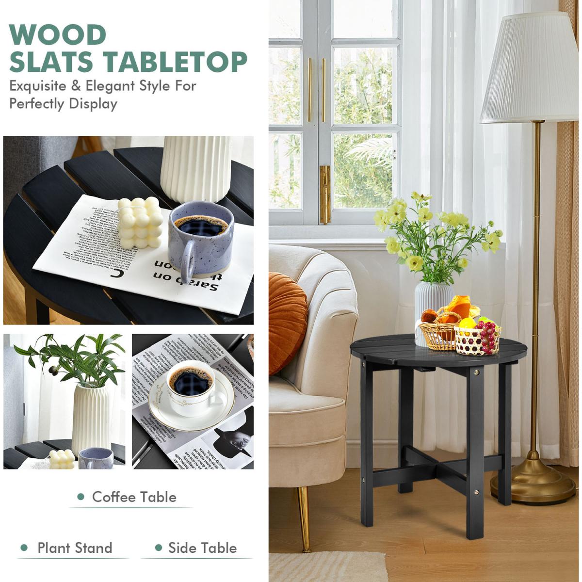 Description: Are you looking for an outdoor bistro table to spend your leisure time? Our round wooden coffee table is a perfect addition to your outdoor chairs. Made of solid fir wood, the round side table is sturdy enough to be used for a long time. And the legs with cruciform structure also improves overall stability. This versatile side table is perfect for your outdoor or indoor space like backyard, patio, poolside, dining room and living room. With smooth spray painted surface, the side table is scratch-resistant and easy to clean. Comes with clear instruction and required accessories, this side table is easy to assemble.