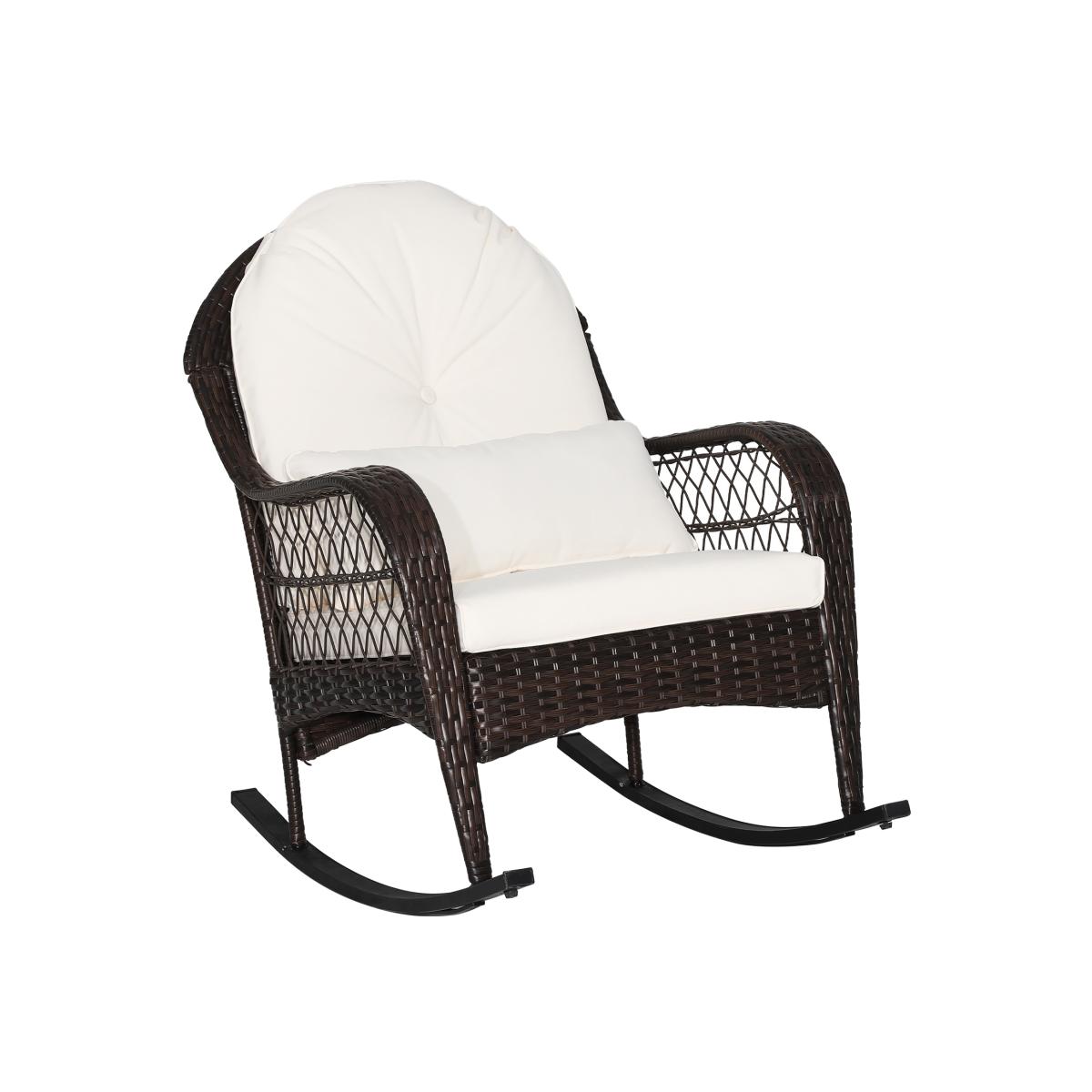This comfortable patio rocking chair allows you to better enjoy leisure time. With sturdy base and bottom stopper, the rocking chair is safe and stable for you to use. The ergonomically designed seat also offers you endless comfort. Apart from that, the seat cushion, back cushion and waist pillow make the seat softer to sit, bringing you a soothing relaxing experience. The rocking chair is also solid and durable with the reinforced metal frame and premium PE rattan. If you want to find a cozy seat for outdoor relaxing, come and get this wicker rocking chair!