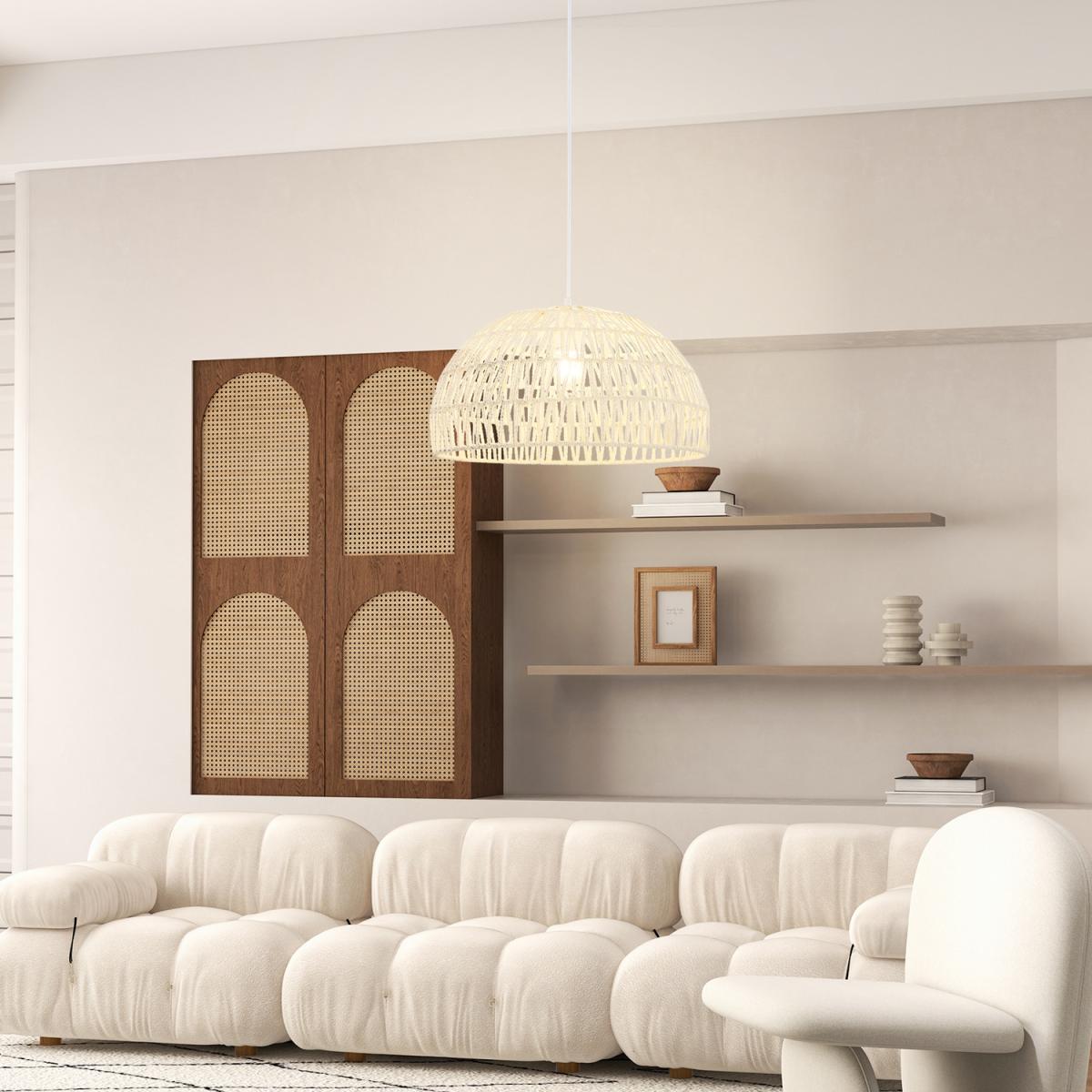 I love this paper pendant light for its minimalist and versatile design, making it a great fit for both modern and Scandinavian-inspired interiors. Its beige hue adds warmth without overpowering a space, and the dome shape provides a cosy, diffused glow - perfect above dining tables, kitchen islands, or cosy seating areas. To style it effectively, consider pairing it with other natural or textured materials, such as wood or linen, to enhance its laid-back charm. For a contemporary look, hang a cluster of these in varying heights, or keep it simple with a single pendant for understated elegance. This fixture works especially well in casual, neutral-toned interiors, adding character without clutter.