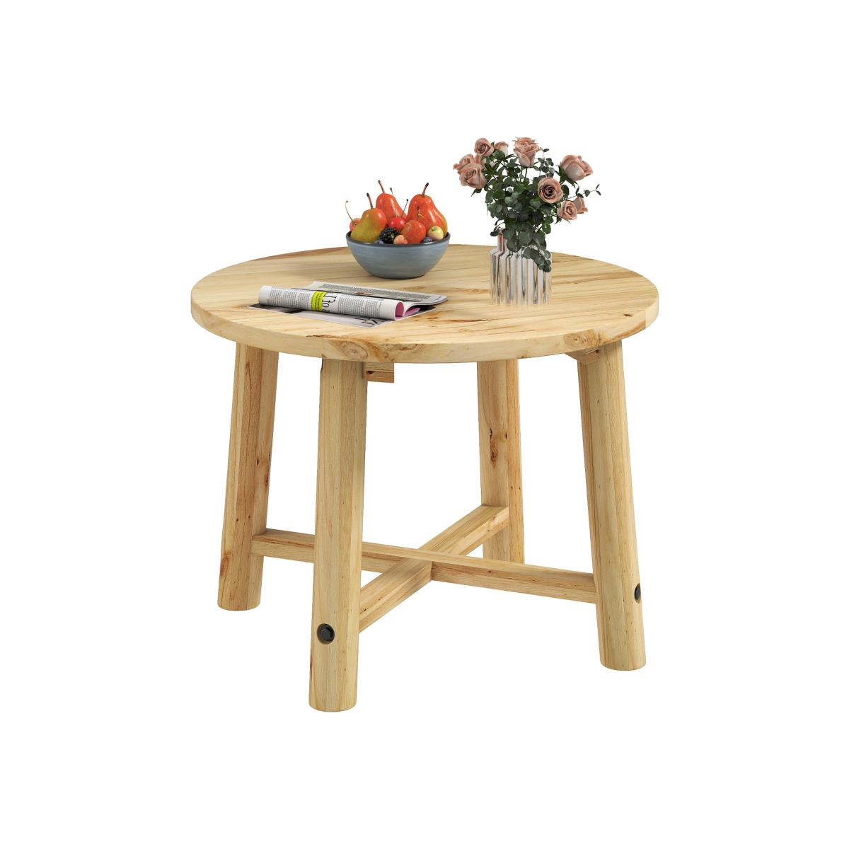 This reliable coffee table is a sturdy and long-lasting piece, crafted from natural fir and pine woods that boast a wood carbonization design. It features robust poles, 2 additional crossbars, and an X-shaped base, enduring high strength and capable of supporting up to 125kg. The side table's spacious round tabletop, along with its rustic wood grain design, adds functionality and aesthetic charm to any outdoor setting. With a painted surface that requires minimal maintenance, you can spend more time relaxing and less time caring for it.