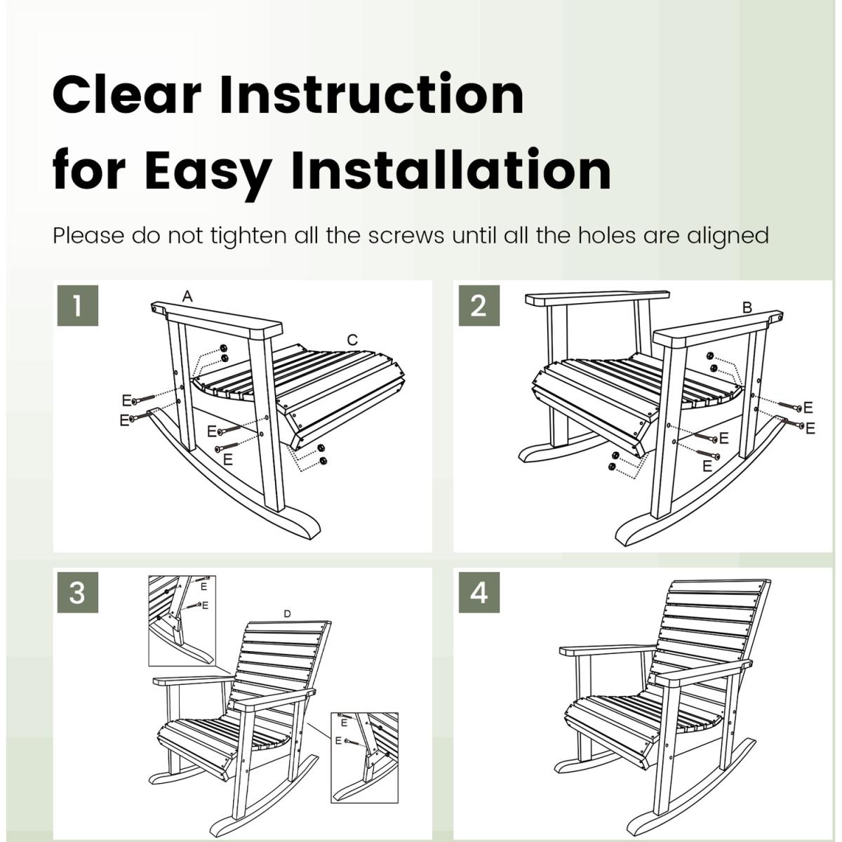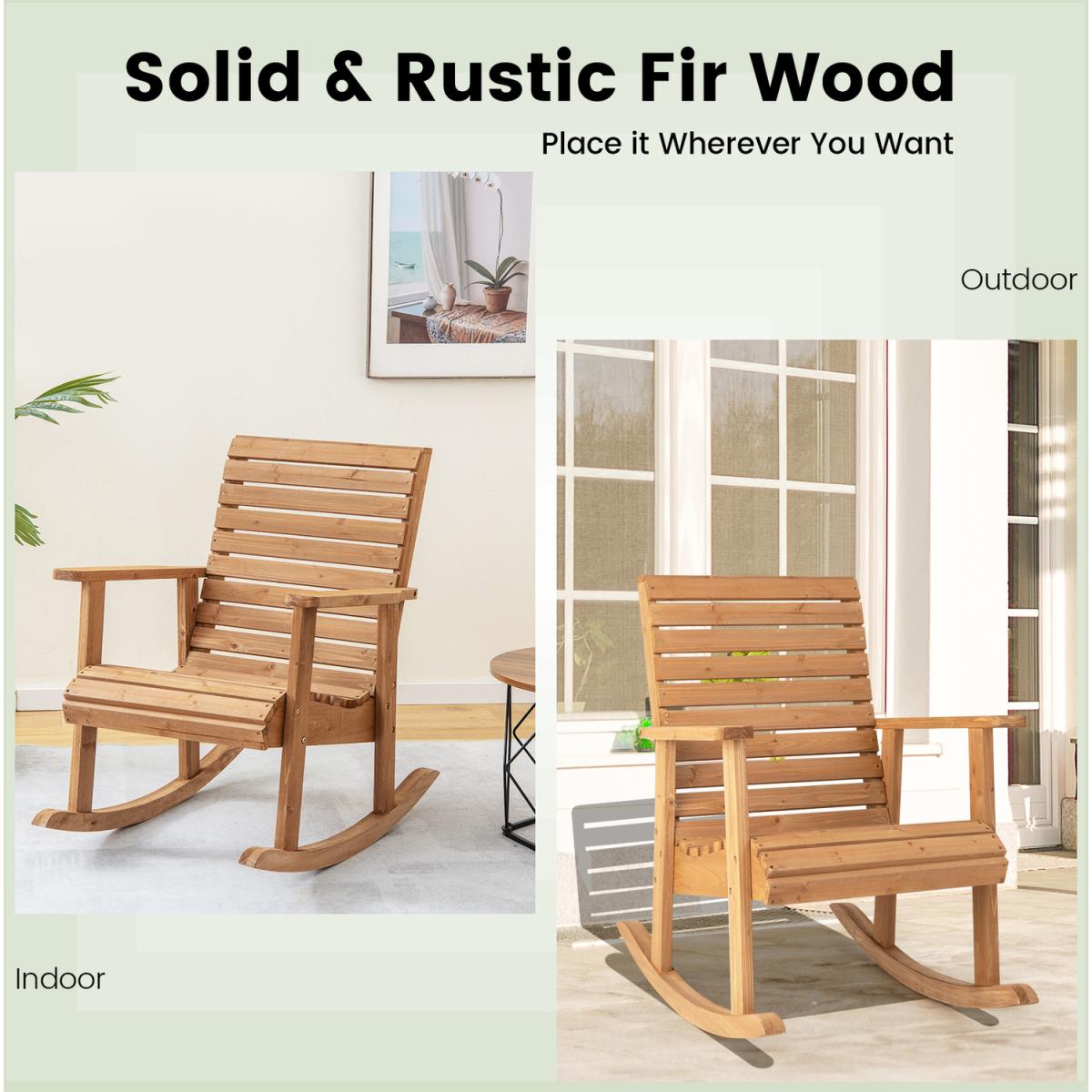 Nothing is more comfortable than sitting in this outdoor rocking chair!Ergonomically designed with high backrest, wide armrests and curved seat, this porch rocker is comfortable enough for you to sit on. Once you rock, the scientific rocking radian ensures a safe and gentle rocking experience to make you feel cozier for complete relaxation. What's more, the selected fir wood is burr-free, durable and stable. All of these advantages endow the longer service time for this patio rocking chair. If you want to make this outdoor rocker chair more unique, just paint the surface in different colors, matching your indoor or outdoor decoration better. Note: please do not let the chair get wet.