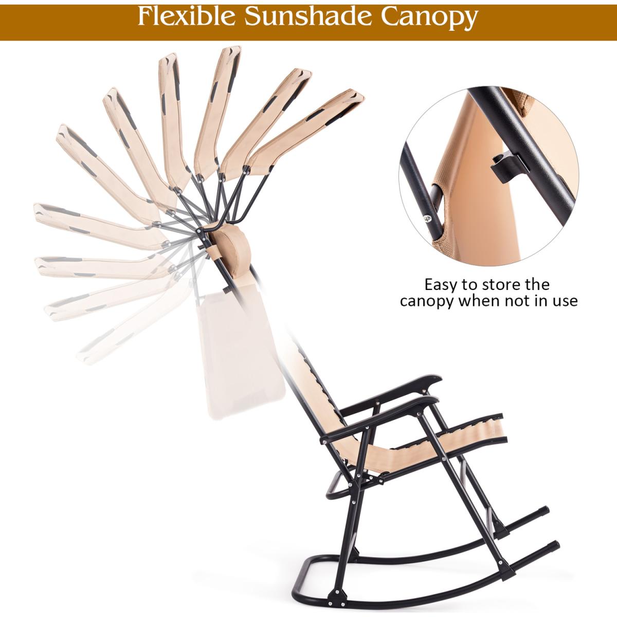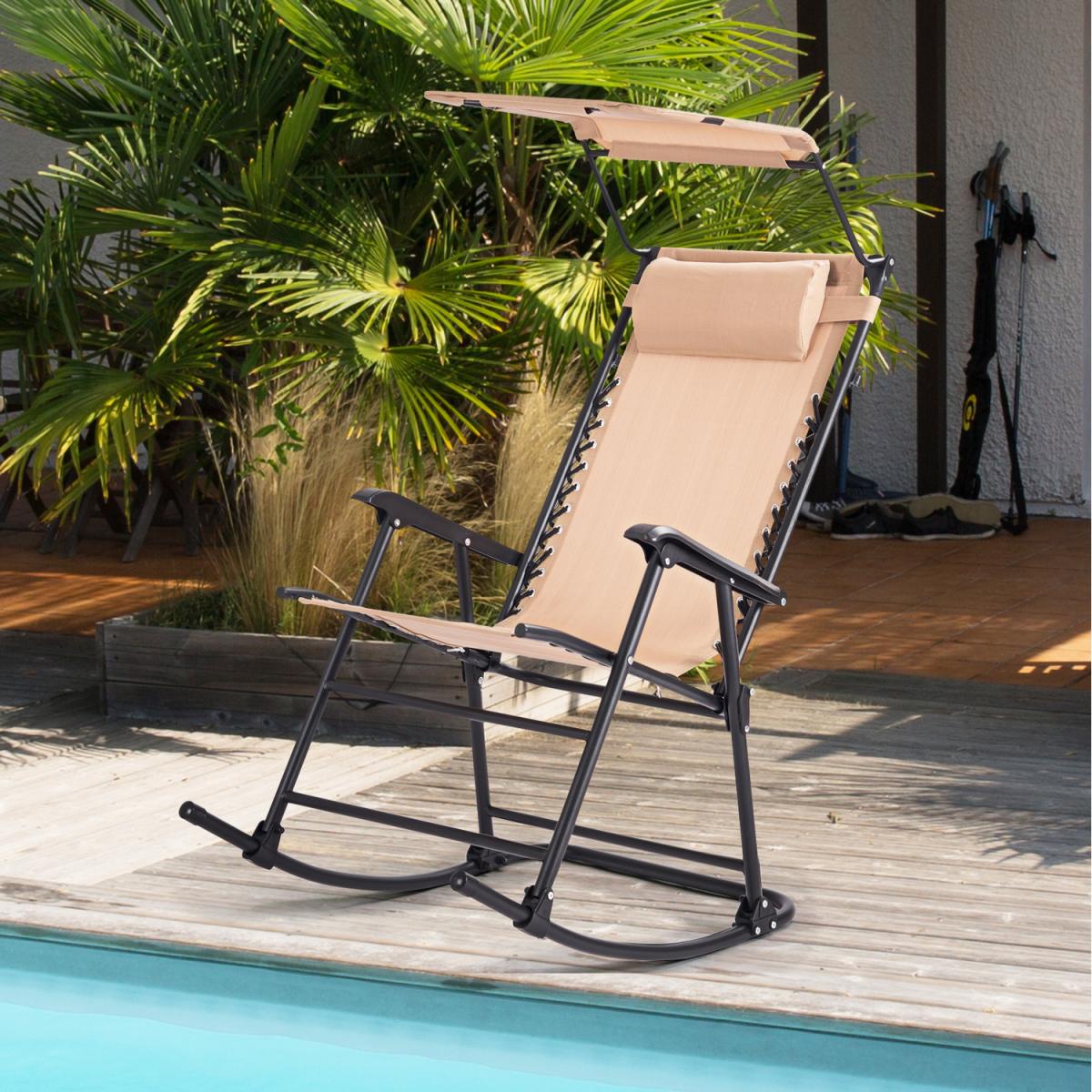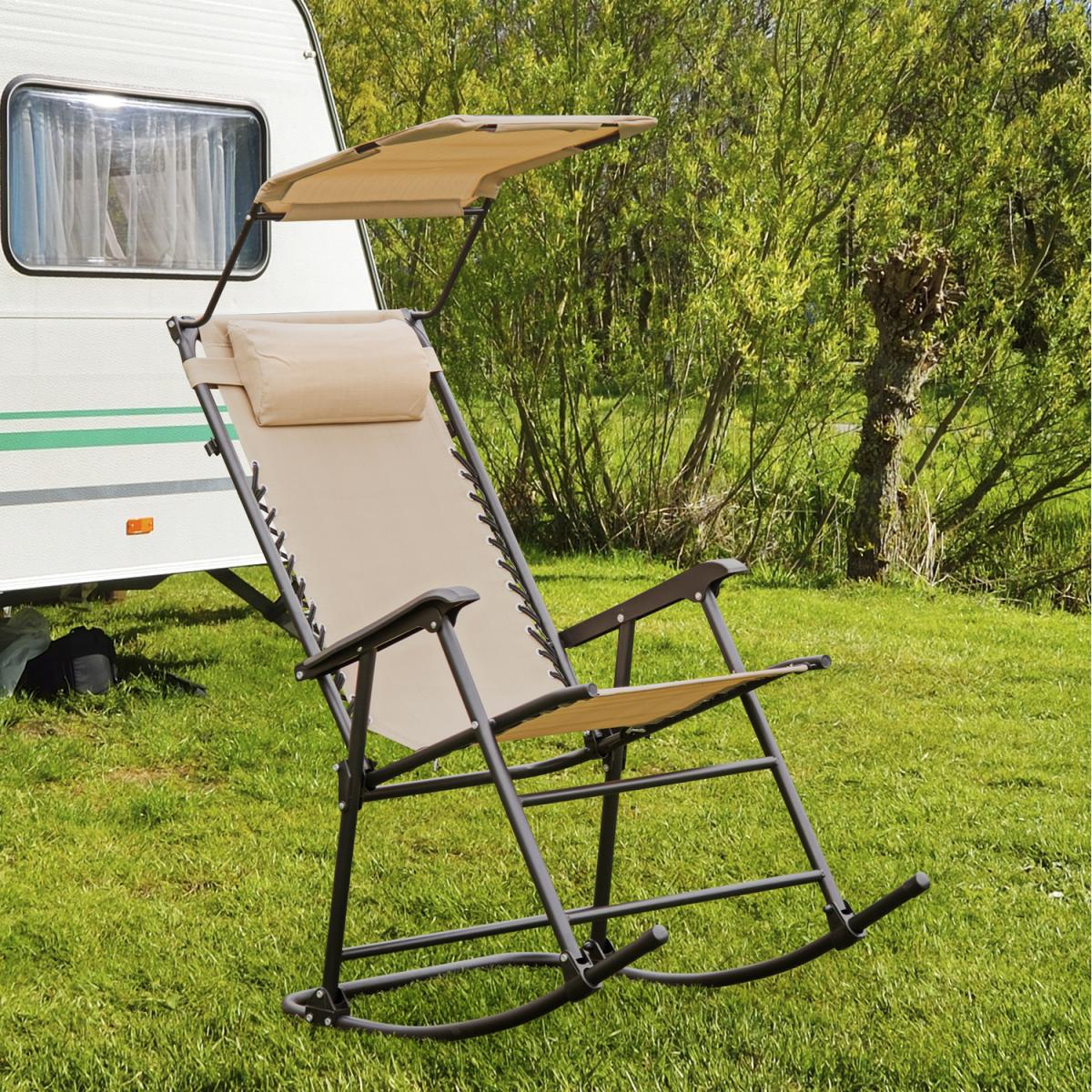 Our foldable rocking chair brings pleasure and comfort to your outdoor activities! Made of powder coated steel frame and durable fabric, this rocker chair is sturdy enough for long service time. This folding rocking chair adopts ergonomic design and the bottom locking system ensures safety. Foldable design allows you to conveniently store and transport. Paired with soft headrest and spacious seat, it adds additional comfort to your body. With simple and practical design, the rocking chair is ideal for outdoor or indoor places, such as living room, backyard and garden.
