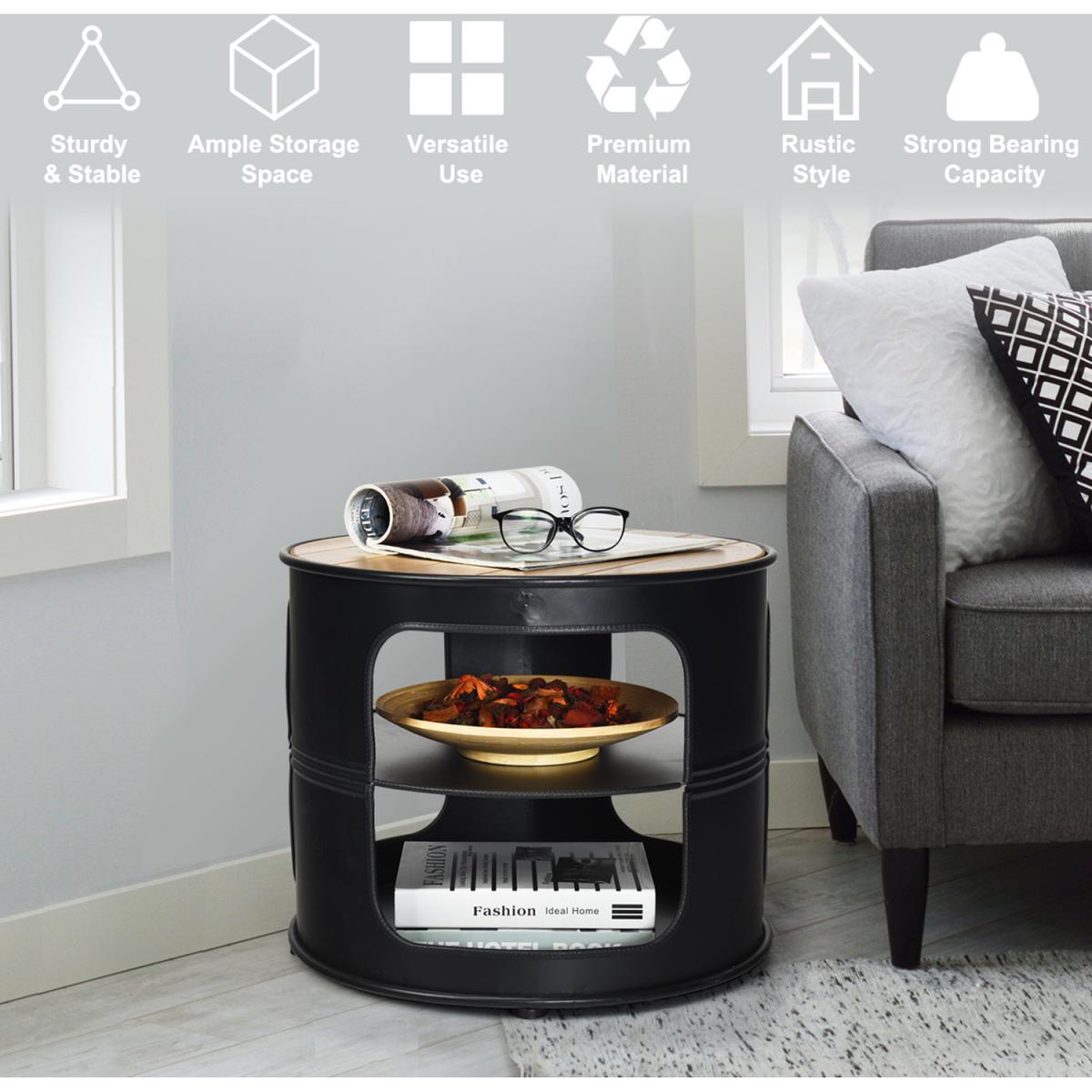 Our round coffee table is a perfect complement for your home! Made of sturdy metal frame and natural fir wood, this coffee table is scratch-resistant and durable for long service time. 3-tier storage shelves provide sufficient space to put books, cups, plants and other daily necessities. Rustic style makes it become an attractive sight in your room. Combined with practicality and aesthetics, the sofa table is perfect for bedroom, living room, office, etc.