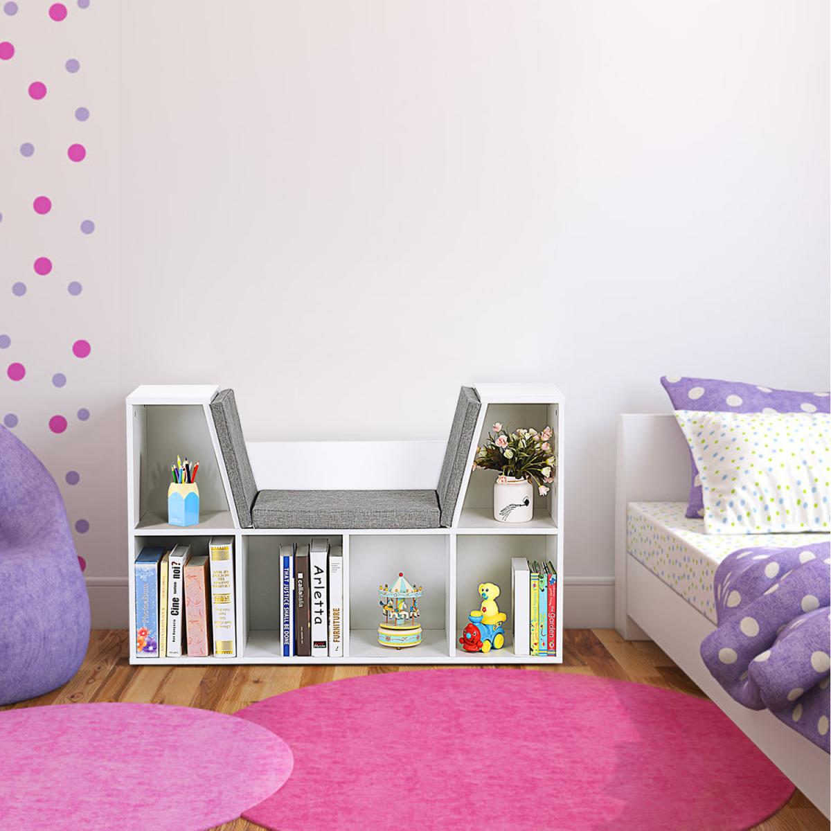 Update your kid's room with a furniture piece that promotes education and organization. Bookcase with reading angle, clever design, strong structure, elegant appearance will be deeply loved by parents. Our bookcases are provided with reading corners to give children a solid place to read their favorite books. This fun piece of furniture has plenty of storage space for big picture books and smaller treasures and offers a lively and fun way to keep toys, books and artwork organized. The versatile seat design, comfortable cushions, converts it into an ideal seating area. Using of high-quality particleboard, environmental protection, safety, durability.