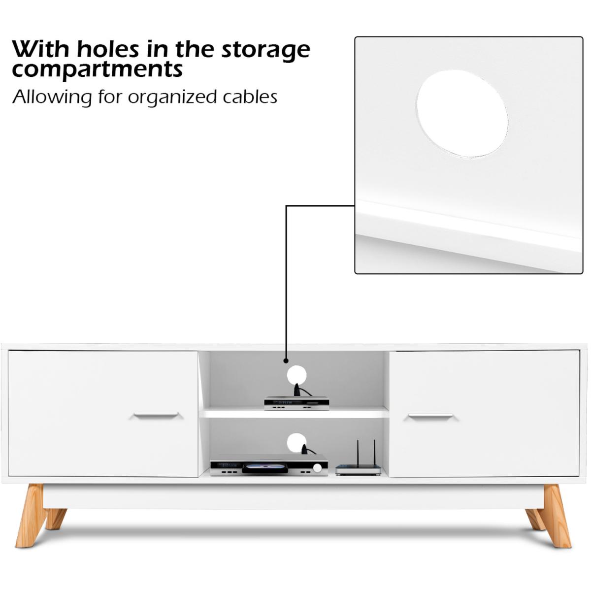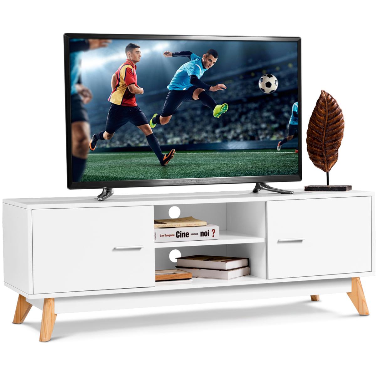 This is brand new TV cabinet with white finish, designed as an elegant and useful furniture in your house. It contains 2cupboards and 2 display shelves -all with big capacity to satisfy your demand to place DVD player, Sky box, games consoles, and more. Two wide hole at the back for all your cords and wires to safely and conveniently thread through to its power source, which can out of sight and out of the way. It helps you to place your goods in order and will fit any kind house style ,surely ideal for your TV and your home. Believe it or not ,it will be a excellent choice to buy. Don't hesitate to take it home!