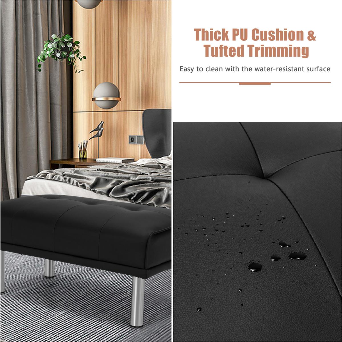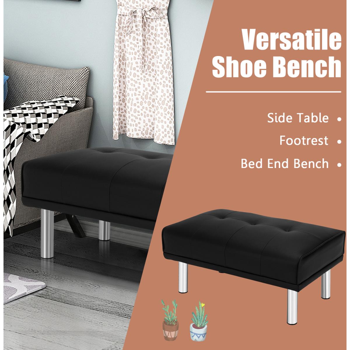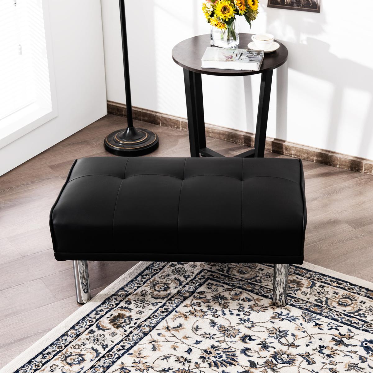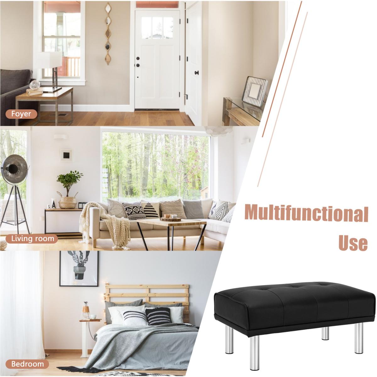 If you are looking for a mid-century luxurious bench for your home, look no further. This upholstered bench is used individually as a resting bench on your porch and hallway, or it can correspond with your sofa to form a comfortable recliner. Or you can place it at the end of your bed. Stainless steel and solid wood materials showcase durability while the overstuffed PU cushion reveals comfort. The bench is stable and cozy once assembled with simple steps. It is lightweight, yet can hold a maximum load capacity of 120kg. Benefited from its classic appearance, this bench is a versatile match for most of the home.