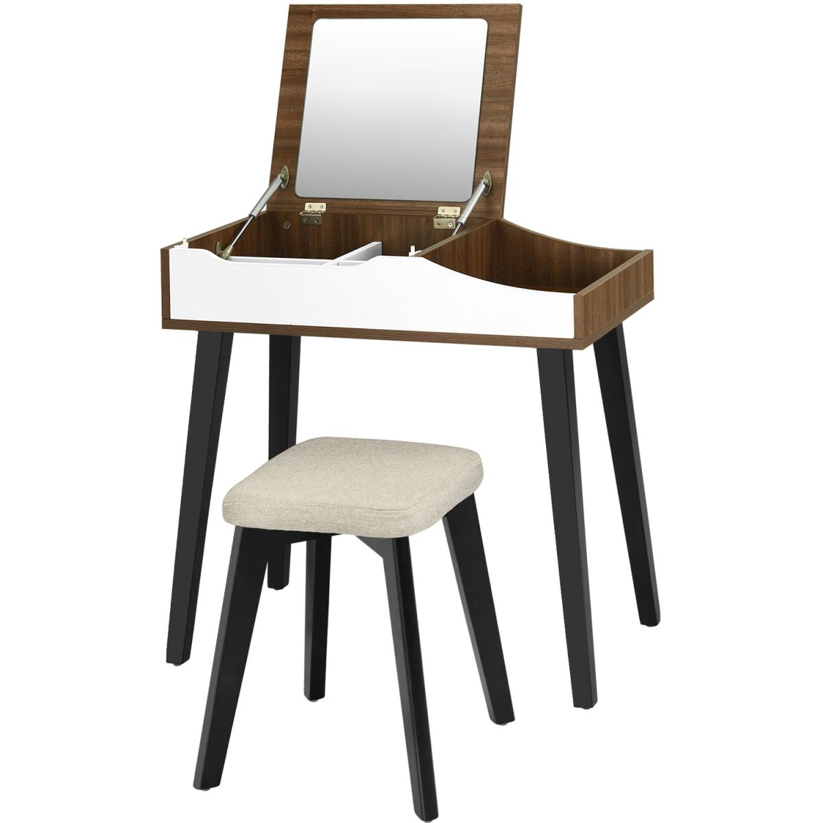 There is a beautiful and practical vanity table for you! Our dressing table is equipped with a flip top mirror. This unique design contributes to save much space on the table top compared to the conventional one. You will also get a work & study desk when you close the mirror. The pneumatic lift system and the buffer design are really helpful to protect the hinges and the wood boards. Moreover, solid wood legs and anti-skid pads make it more stable for long-lasting service.