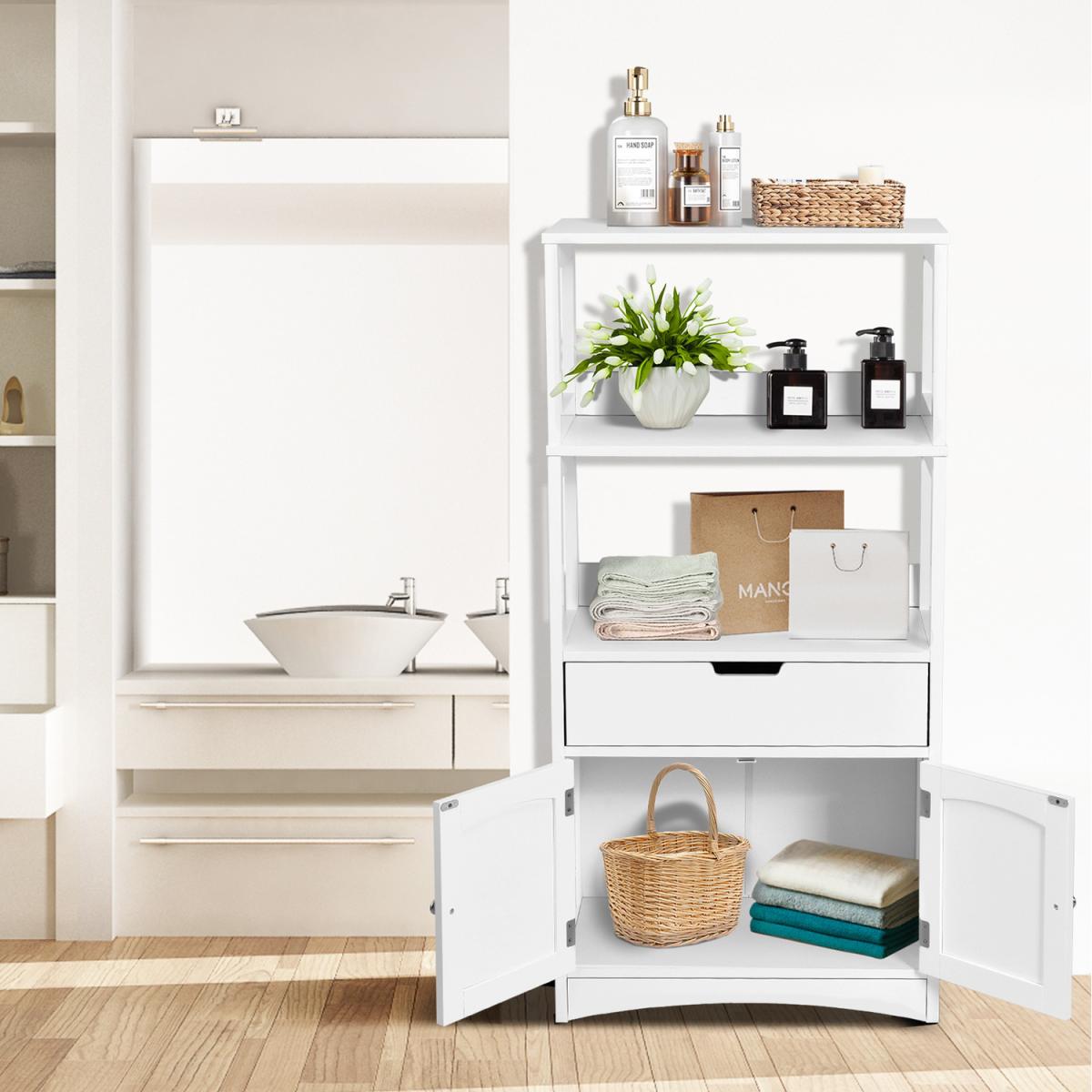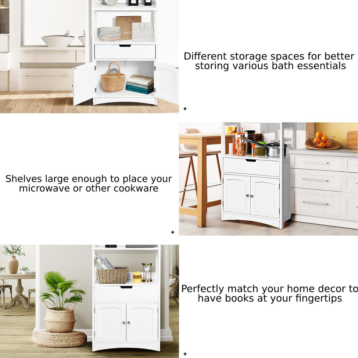 Are you looking for a practical storage cabinet to decorate your home? Our floor storage cabinet is an ideal choice. To provide you with flexible storage options, our multipurpose bathroom floor cabinet with a 3-tier rack, a large drawer and a door cupboard will meet your daily needs. The humanized shelf height with open design ensures easy access, and the drawer and door sideboard enhance personal privacy. Constructed by sturdy MDF structure, this wooden entryway cabinet ensures high firmness, stability and load capacity. What's more, the extra anti-toppling mechanism enhances using safety. This elegant sideboard cabinet is versatile to fit different kinds of decoration styles, and its space-saving design also fits limited living space.
