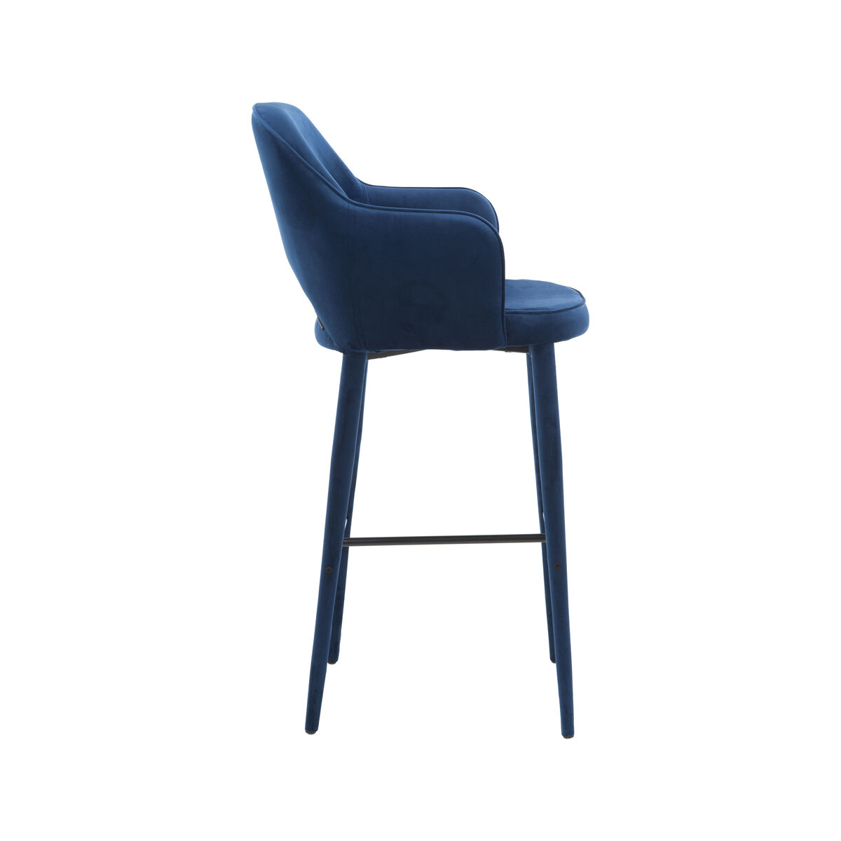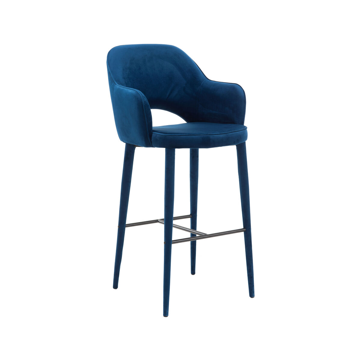 A vintage, chic style for this ultra-comfortable bar chair. The enveloping shell, consisting of a backrest and armrests, as well as the soft padding, ensure optimal seating comfort. The opening at the bottom of the backrest serves as a handle to easily manipulate the stool. The Cosy barstool has an ultra-elegant, single-material finish. It’s covered from top to toe with a luxurious velvet material. Silky, velvety and warm, this fabric represents a refined and glamorous style. The intense, vibrant colour will bring a certain cosy conviviality into your home. The tapered legs are fully upholstered. This high stool lets you create a bar space or dining area with a sophisticated look.