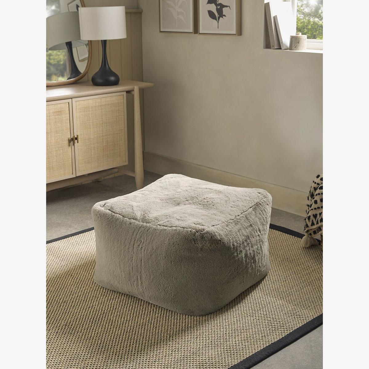 In warm mink toned faux fur, this super cosy pouffe is the perfect footrest or occasional seat for living rooms and bedrooms where comfort is key.  Neutral enough for any setting, it's also lovely for scandi inspired interiors.