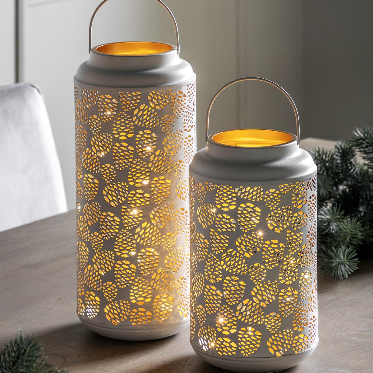 Cosy Pinecone Lantern, LED, Small, White