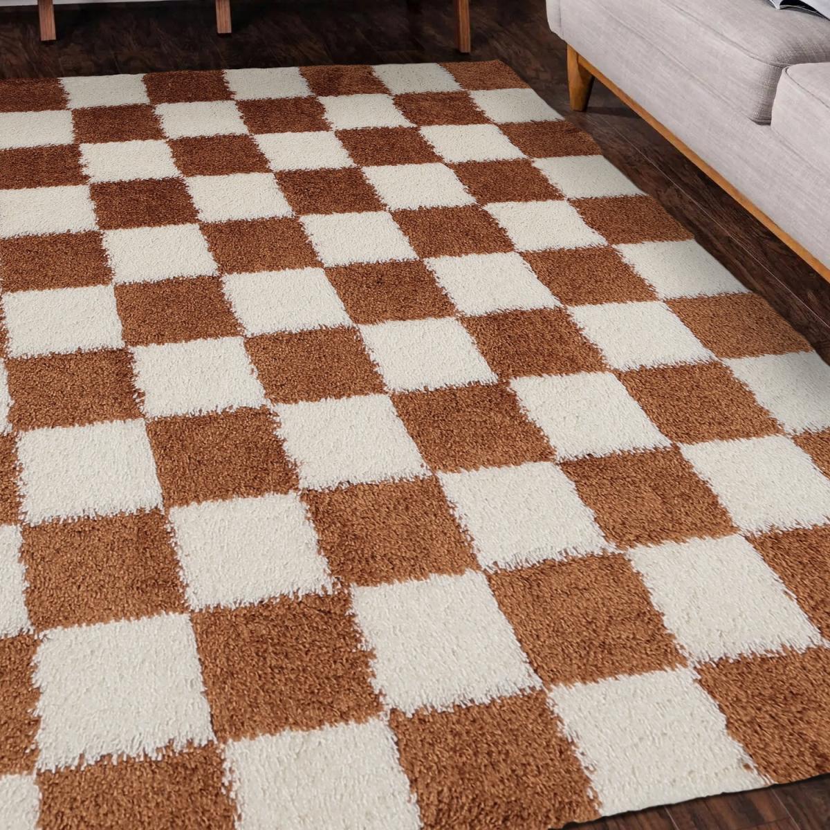 Cosy Snuggly Check Terra Area Rug - Terracotta / 120x170cm