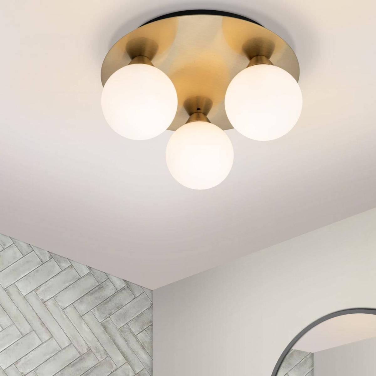 COSYLYTE Bowen Bathroom 3 Light Glass Ceiling Flush Light - Brass