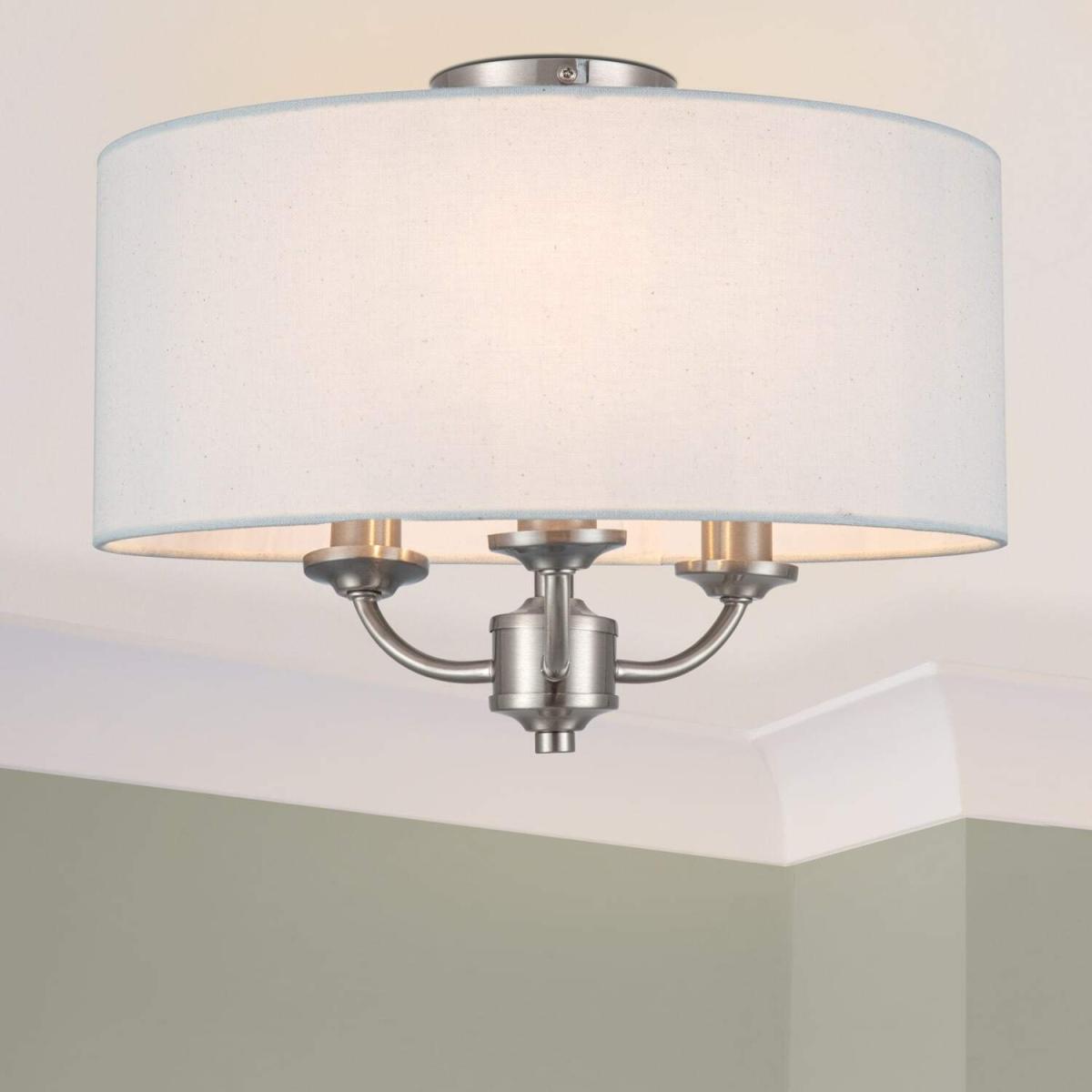 COSYLYTE Winston 3 Light Faux Linen Shade Ceiling Light - Nickel