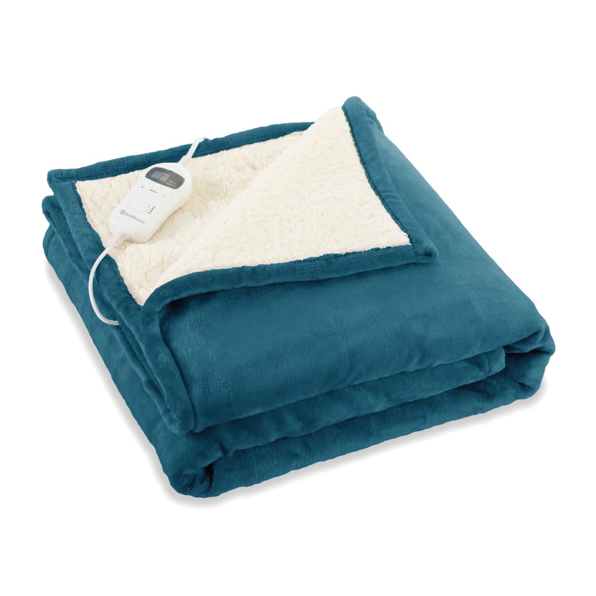 Snuggle up in ultimate warmth and luxury with the Cosy Snug Luxury Heated Throw in a stylish teal colour. Generously sized at 160 x 120 cm, this throw is crafted from a blend of soft flannel and plush teddy fleece, wrapping you in cozy comfort while adding a touch of elegance to your home. Designed for your convenience, the Cosy Snug throw features detachable controls, making washing hassle-free. The energy-efficient 120W power consumption ensures you stay warm without a spike in energy costs, while the advanced PTC+NTC technology provides fast, consistent heating for immediate comfort. Feel secure with the integrated overheating protection system, providing you with peace of mind as you relax. With a fast 5-minute heat-up time, you'll feel the warmth almost instantly. Adjust the temperature to your liking with 10 heat settings, and customise your experience further with a 1-10 hour timer, complete with heat and pause functions for maximum flexibility. The throw also features an LED control display for easy use and comes equipped with a BS plug for seamless integration into your home. When it comes to cleaning, simply detach the controls and machine wash it at 40 degree Celsius, keeping your Cosy Snug throw fresh and ready for use. Whether you are curling up on the couch or adding an extra layer of warmth to your bed, the Cosy Snug Luxury Heated Throw transforms any space into a cozy retreat, combining elegance, warmth, and practicality for cold winter nights or anytime you need a little extra comfort.